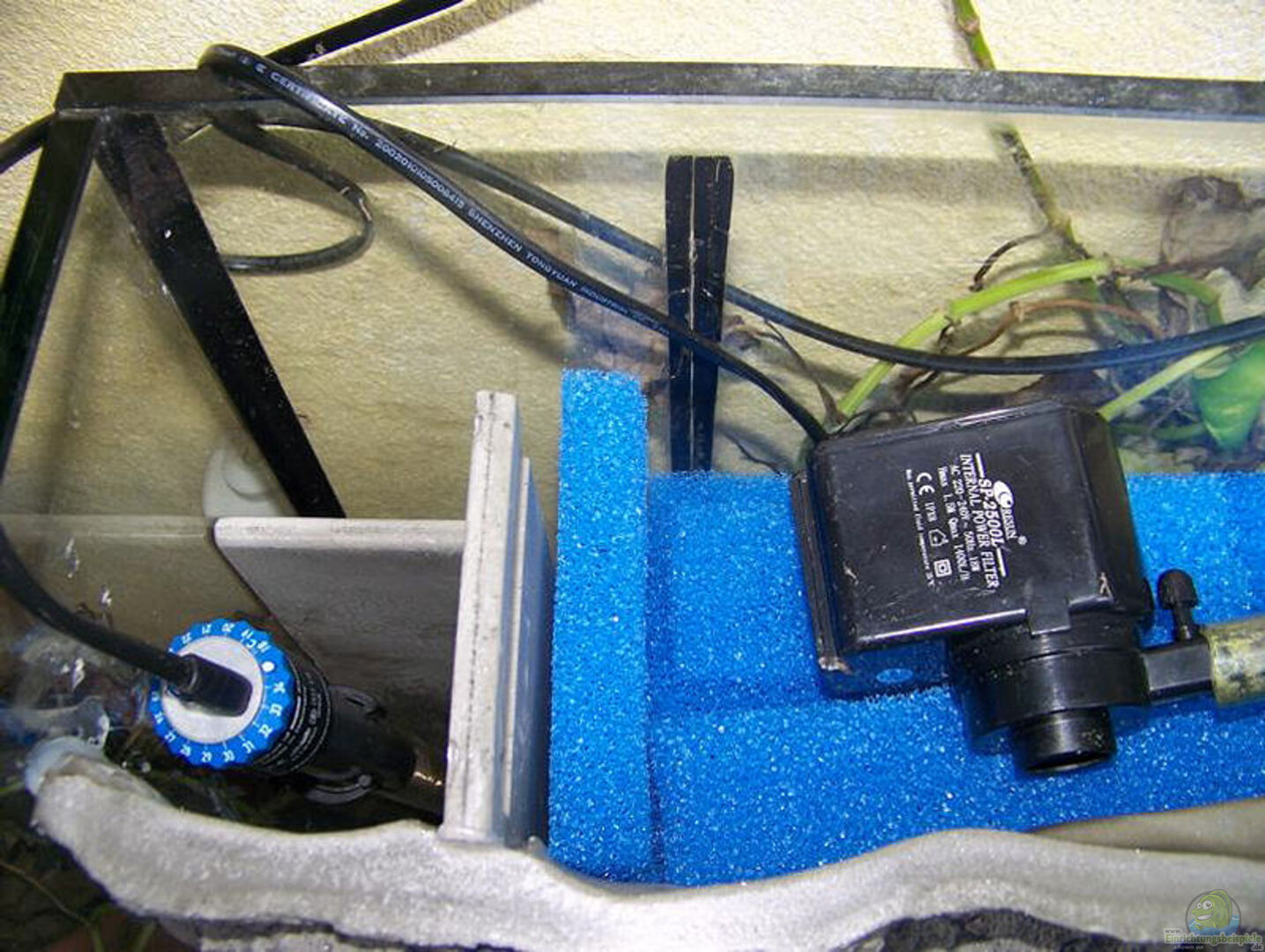 Stömungspumpe und Mattenfilter mit Tauchpumpe dahinter
