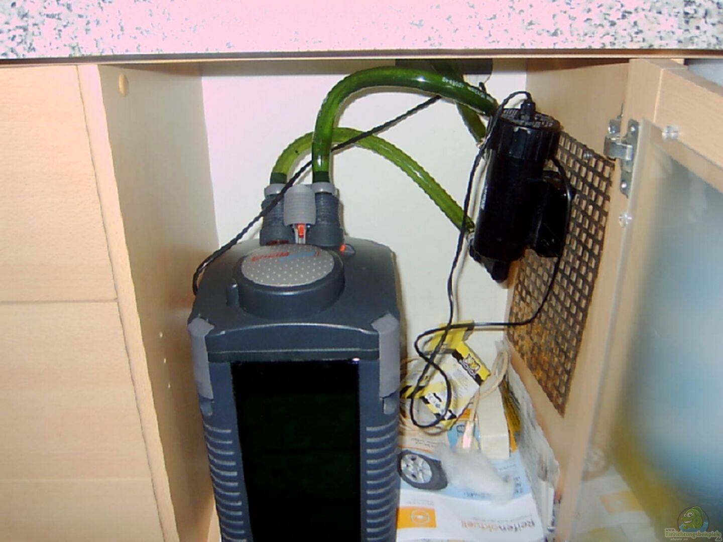 Pumpe und Heizung hinter der Filtermatte