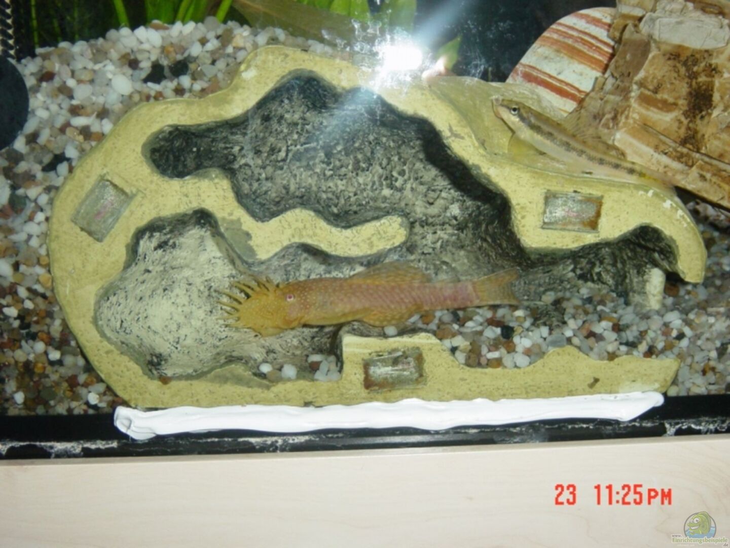 Der ReptileDen im Aquarium (offen mit goldenem Ancistrus). W