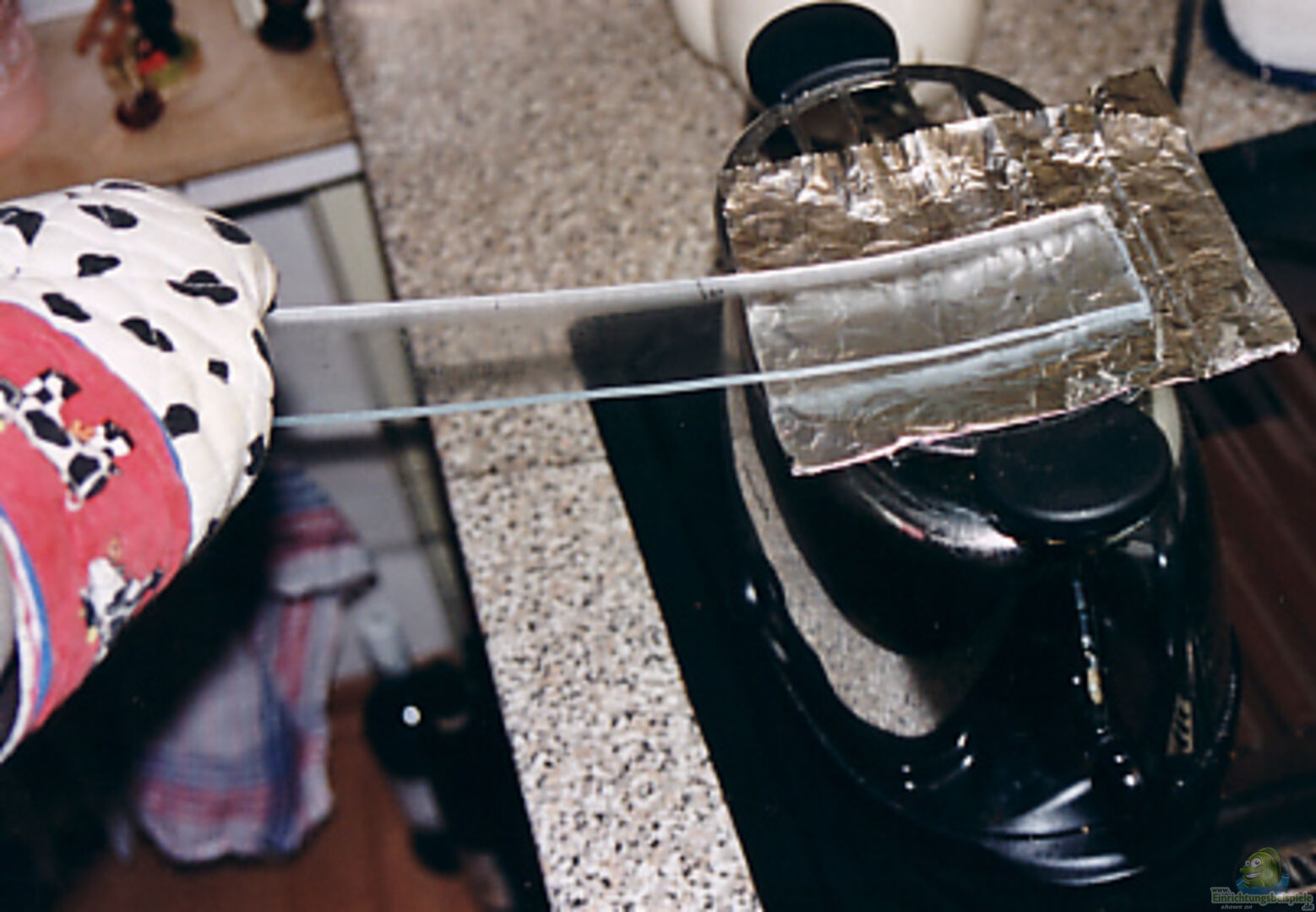 Biegen des Plexiglases mittels Toaster für die Sandblende.