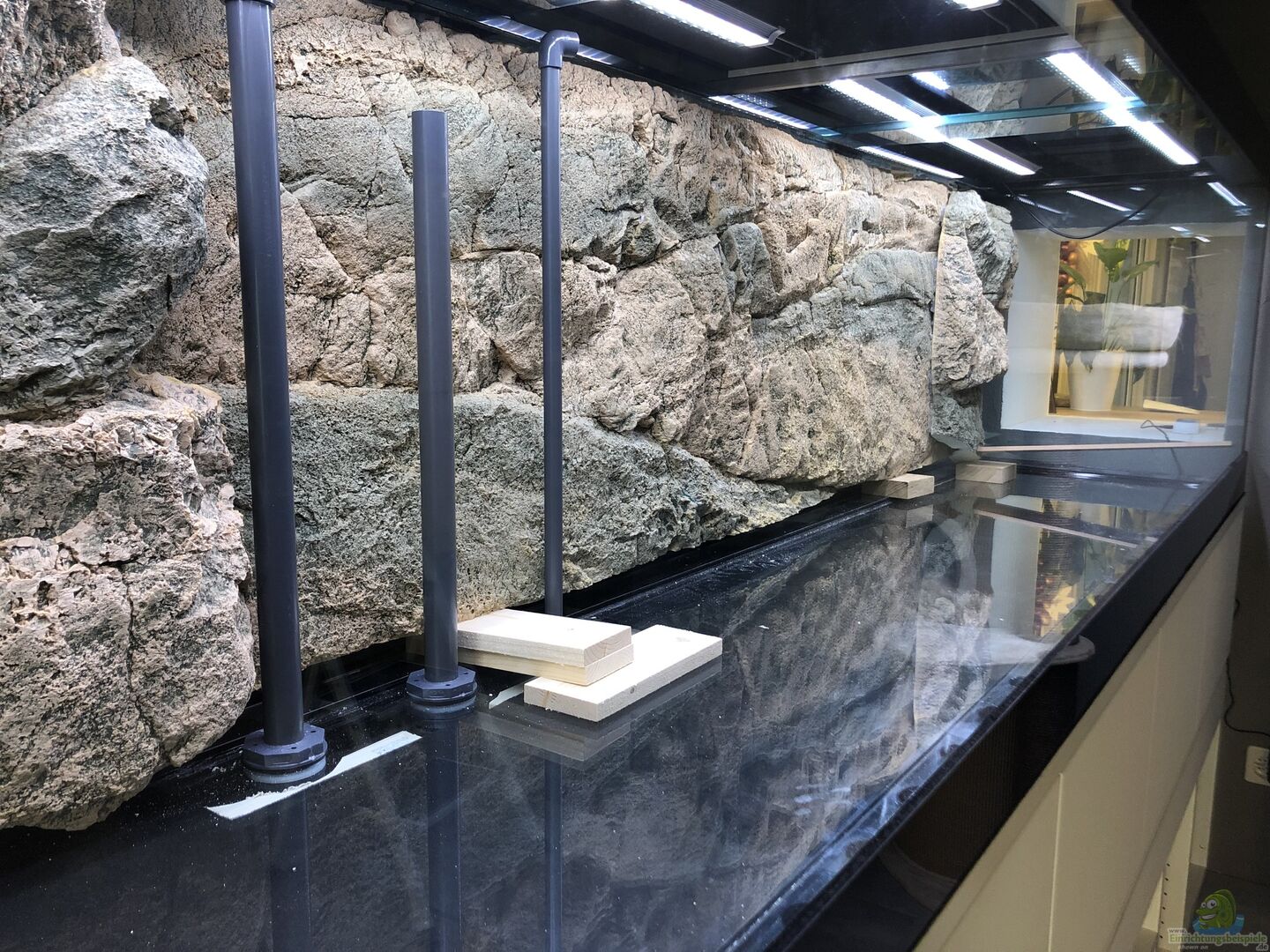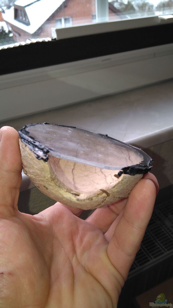 Das Aquarium mit den fertig verklebten Rückwänden. Die Hol