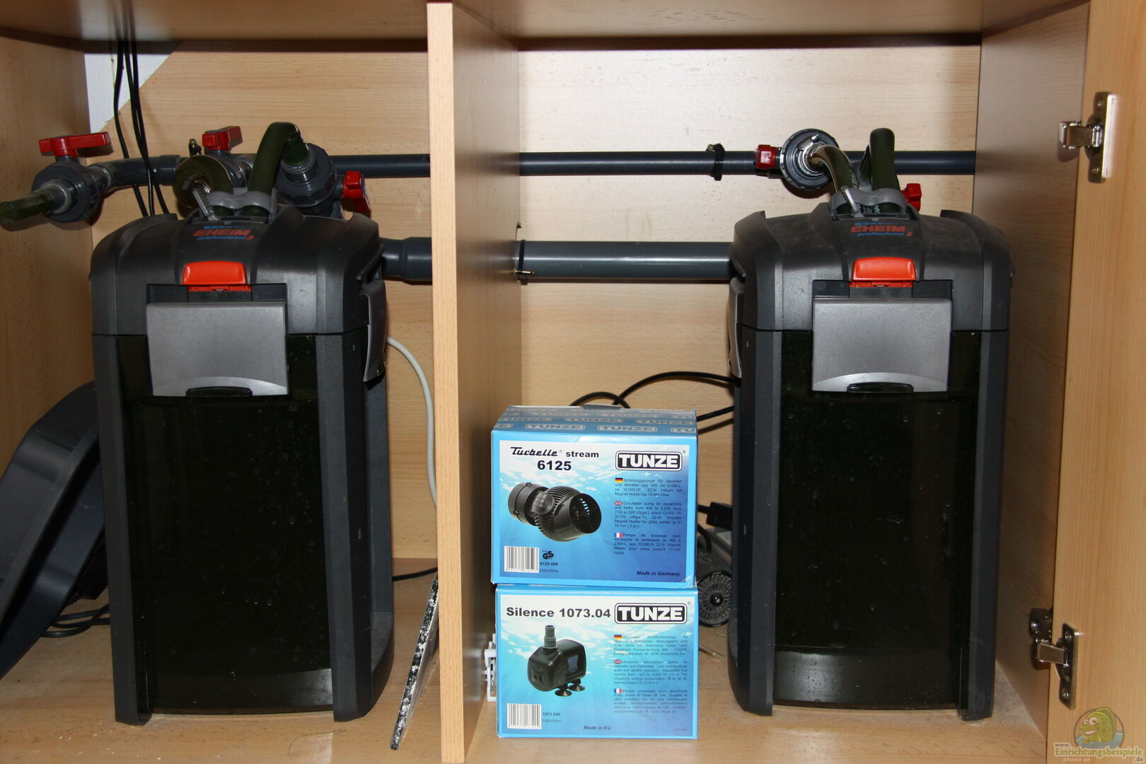 Ansaugseite rechts Eheim 350 und beide Ausläufe
