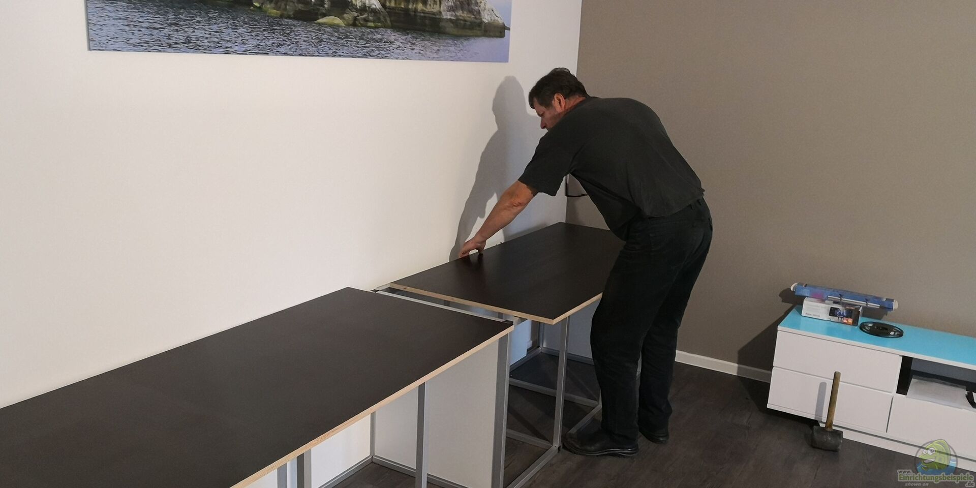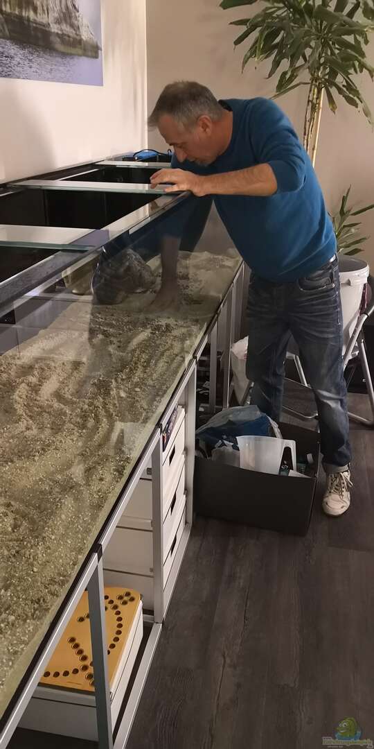 Bernd Neu der Aquarien Bauer endlich da und beginnt das beck
