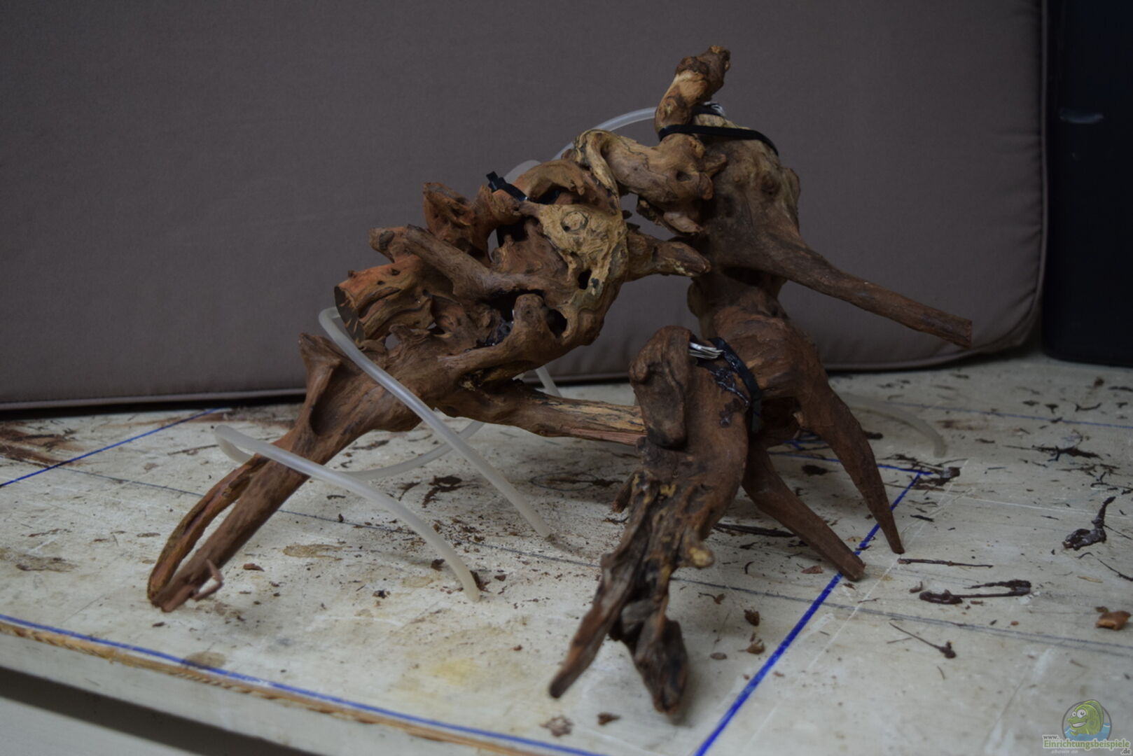 4 Mangroven-Hölzer mit Kabelbindern zu einem grossen Stück