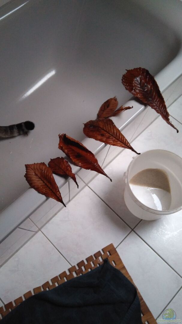 Gesammelte Kastanienblätter beim Trocknen. Auch für mein G