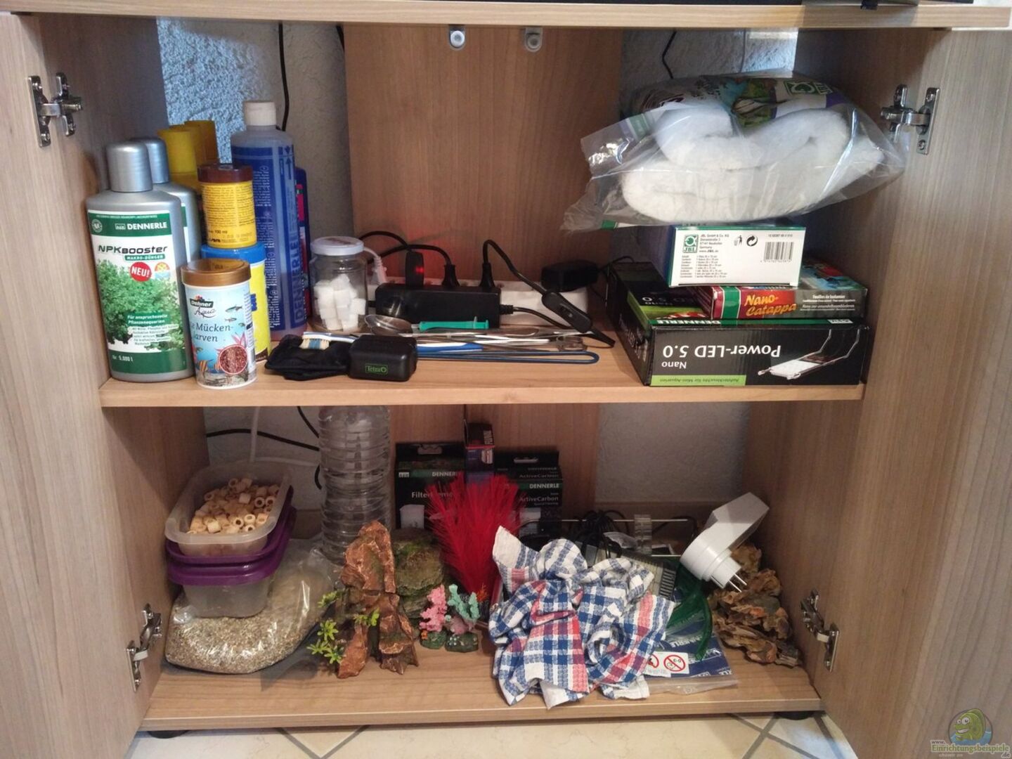 Unterschrank reichlich gefüllt mit benötigtem Zubehör, so