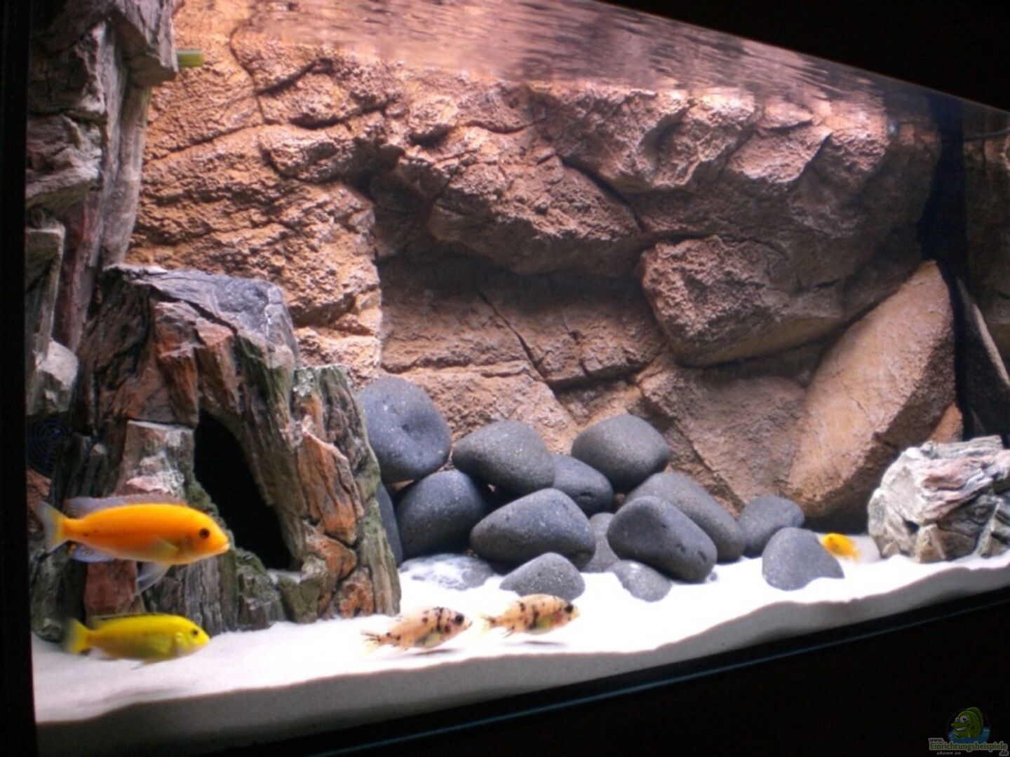 frisch eingerichtet - ohne Algenbewuchs auf den Felsen - mit