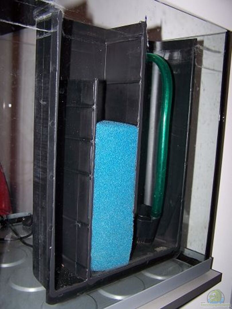 Rückansicht des Beckens; 3-Kammer-Innenfilter in der Rückw