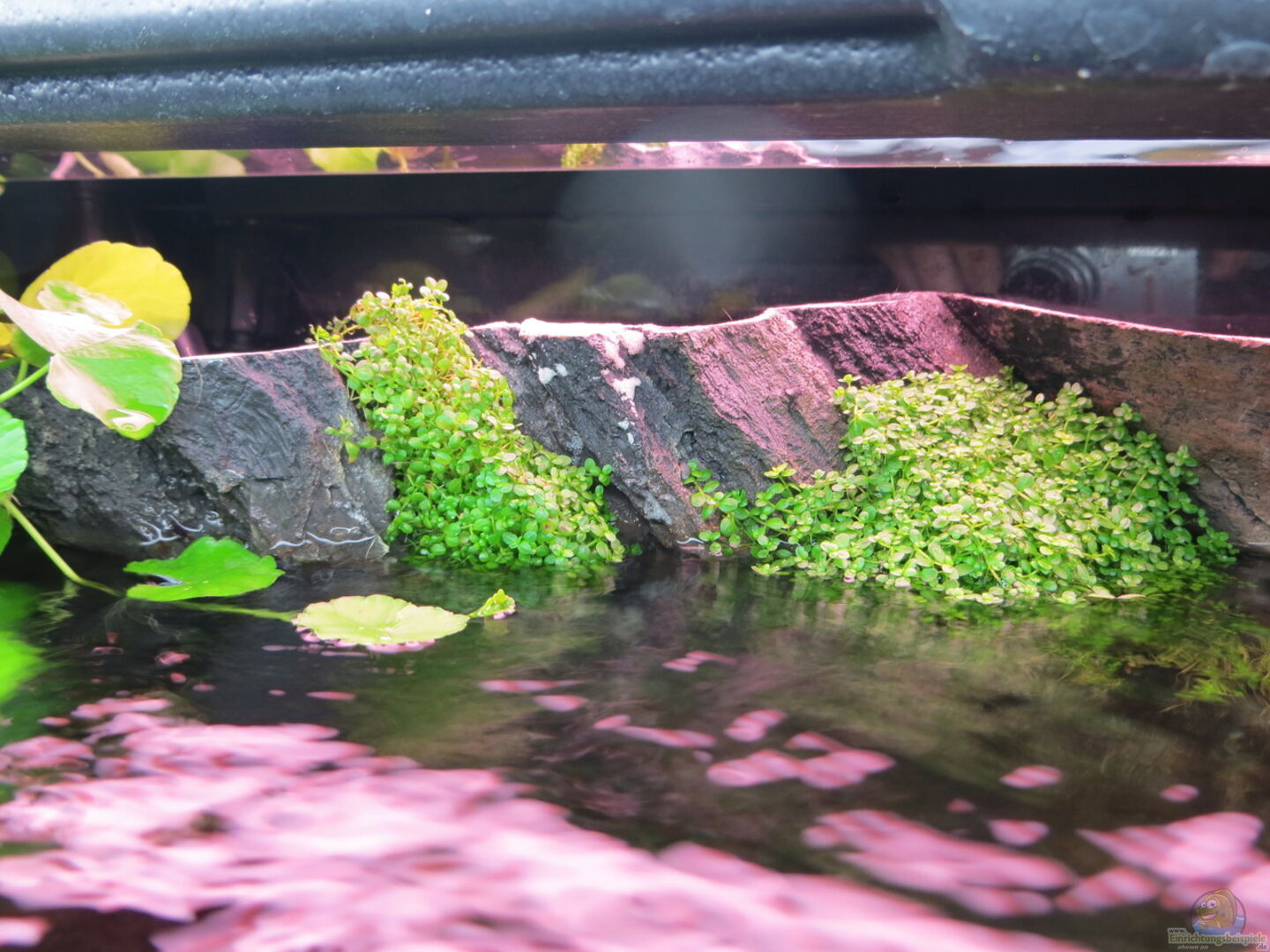 Wassernabel wächst von der Rückwand aus ins Aquarium
