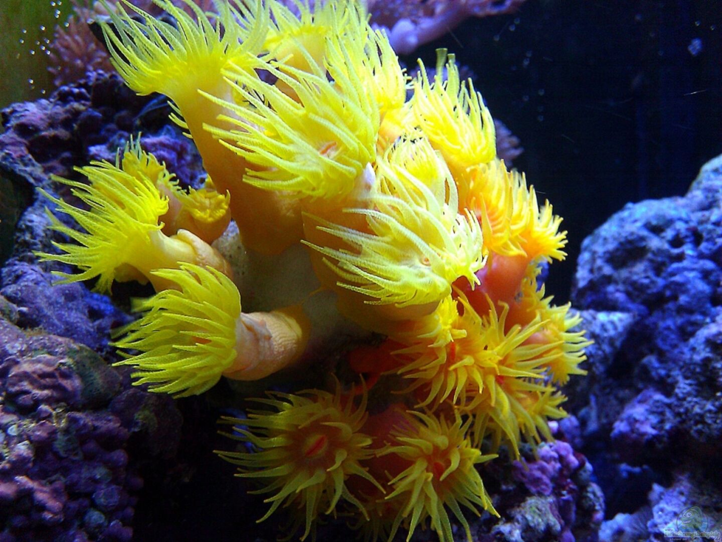 Orange-Gelbe Kelchkorallen ernähren sich von Staubfutter, Plankton, Zooxanthellen / Licht.