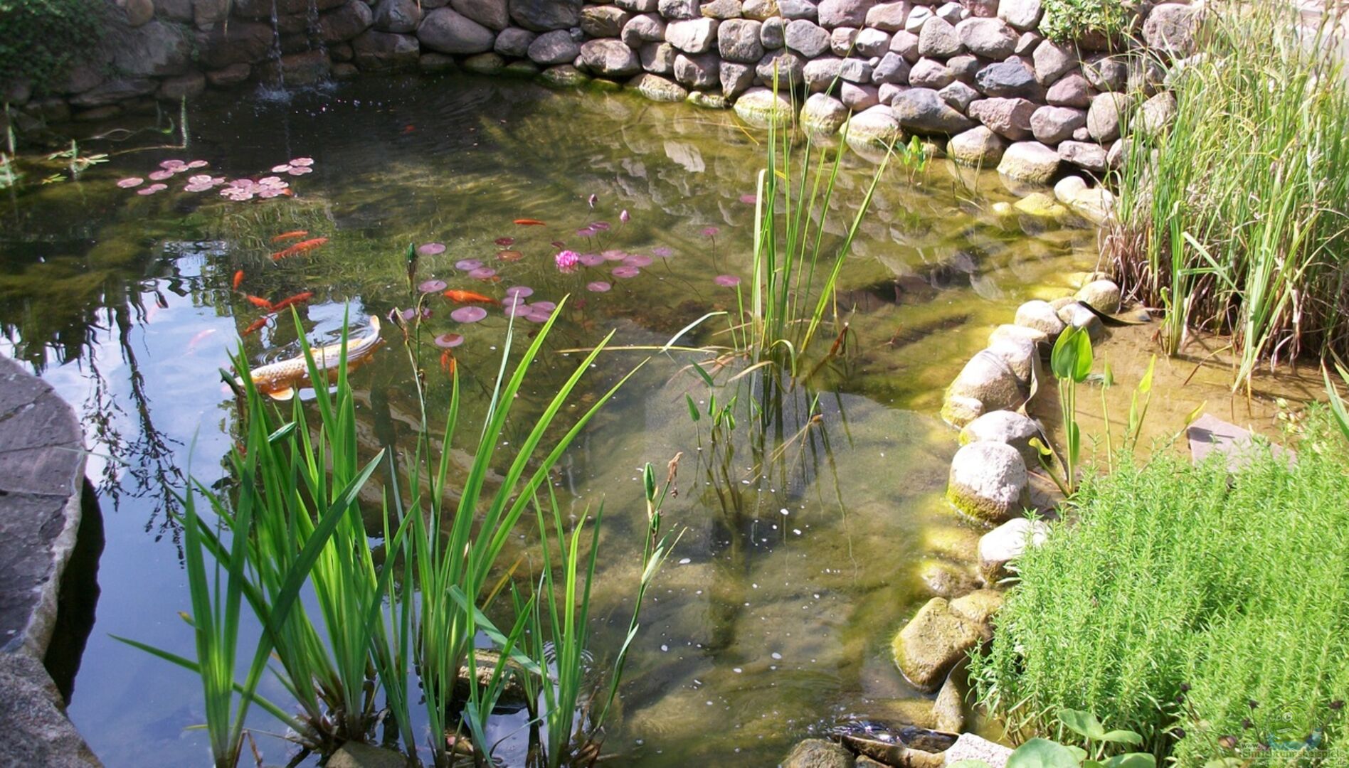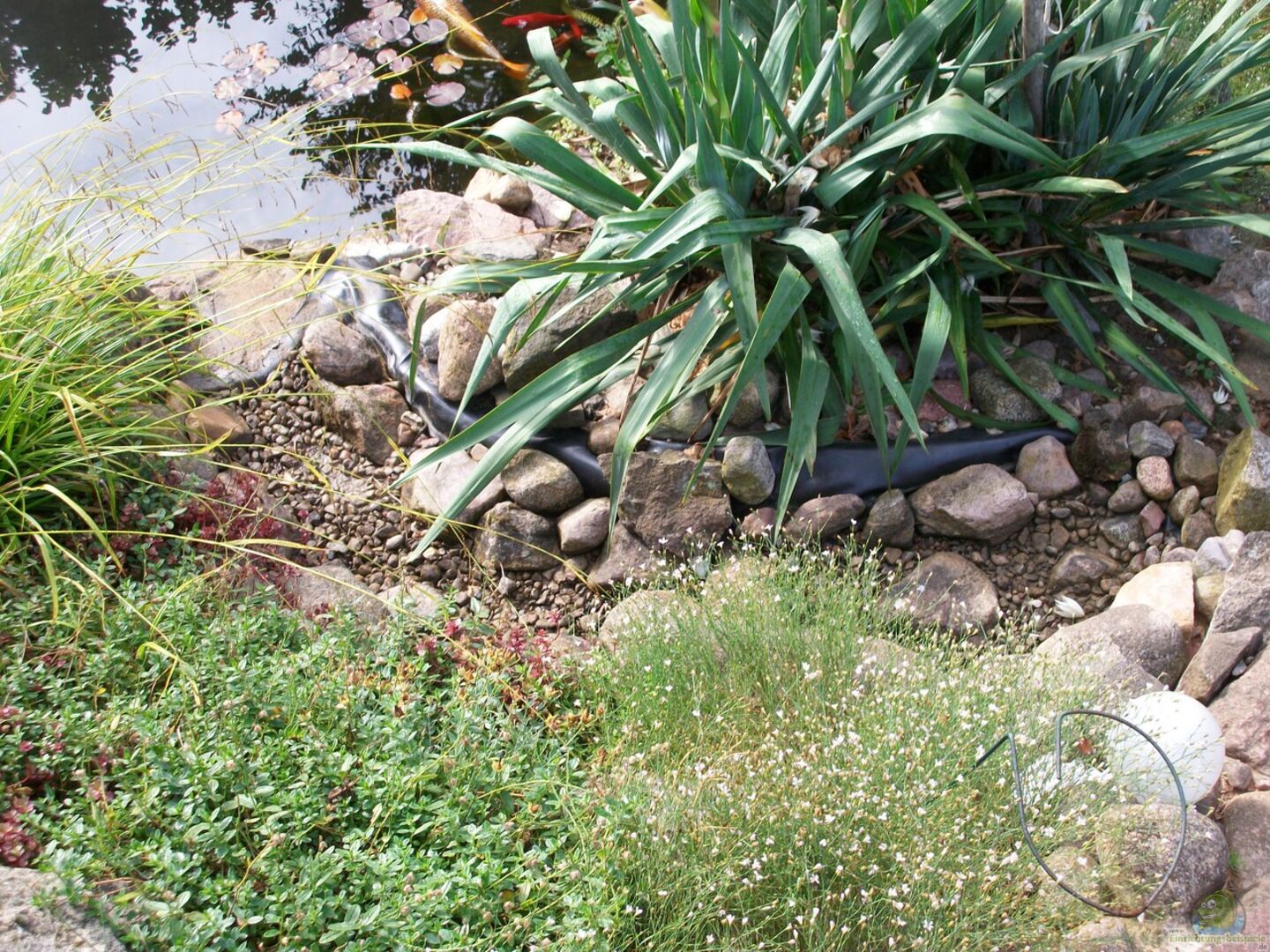 Als biologischer Filter funktioniert das sehr gut. Trotzdem war der Teich die letzten Jahre immer sehr trüb weil Schwebstoffe oder Algen richt mit ausgefiltert werden.