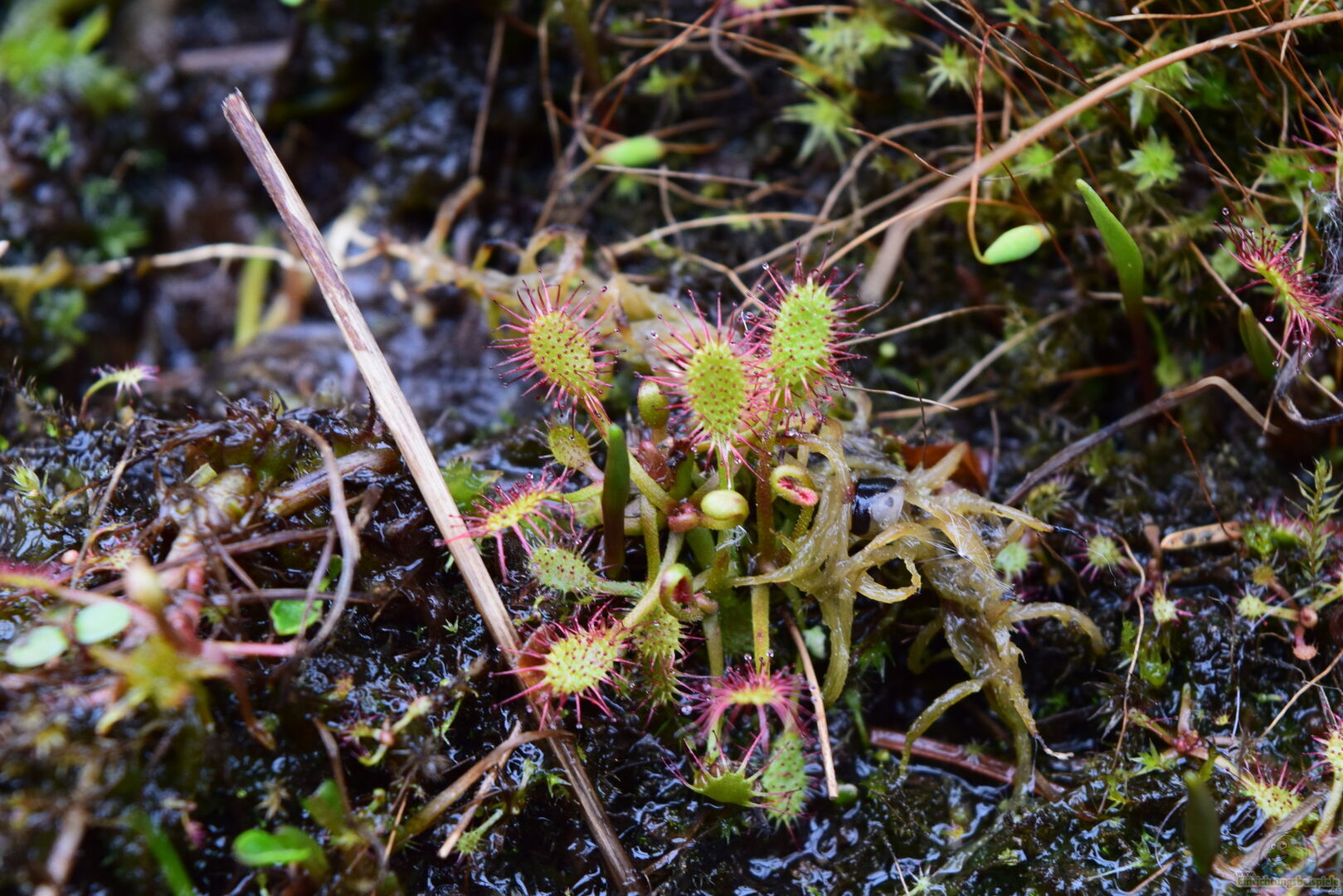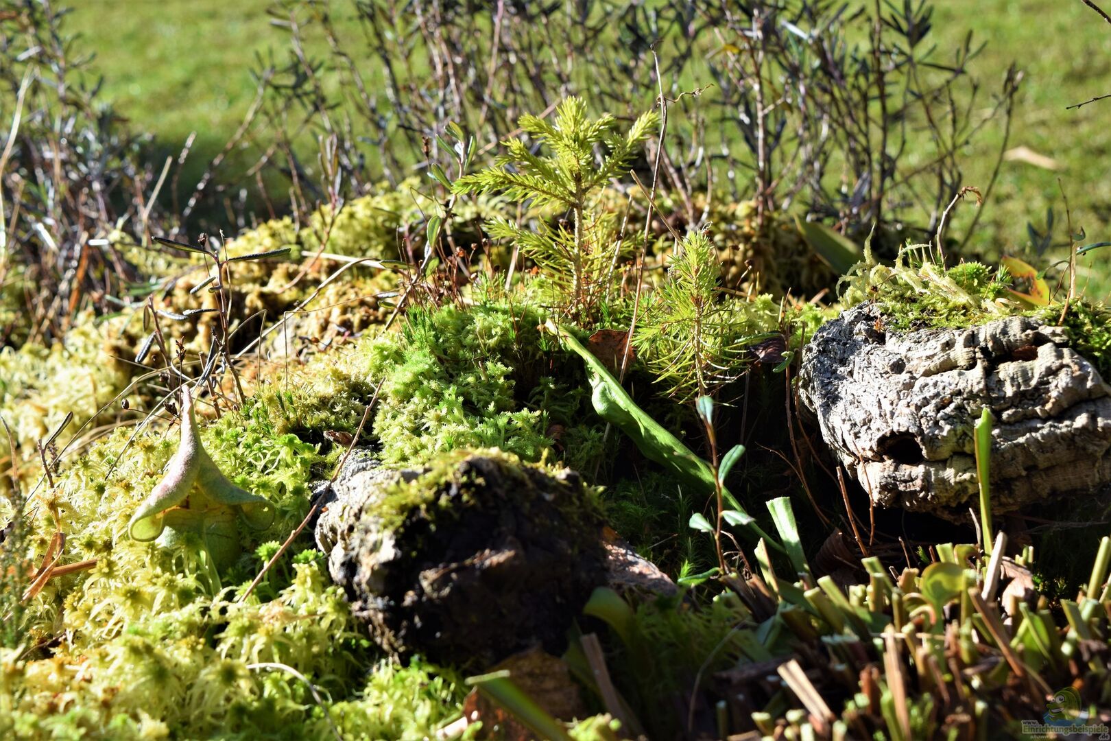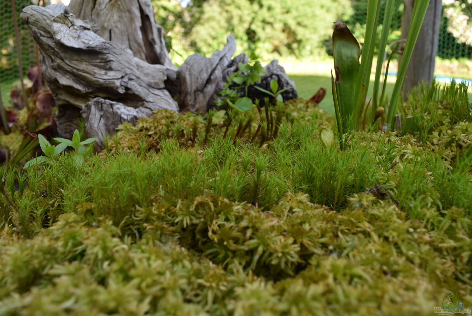 Weiterhin war ein Netzgerüst notwendig, um Amseln davor abzuhalten, dass eingesetzte Sphagnum-Moos und die randvoll mit Insekten gefüllten Kannenpflanzen, zu plündern.