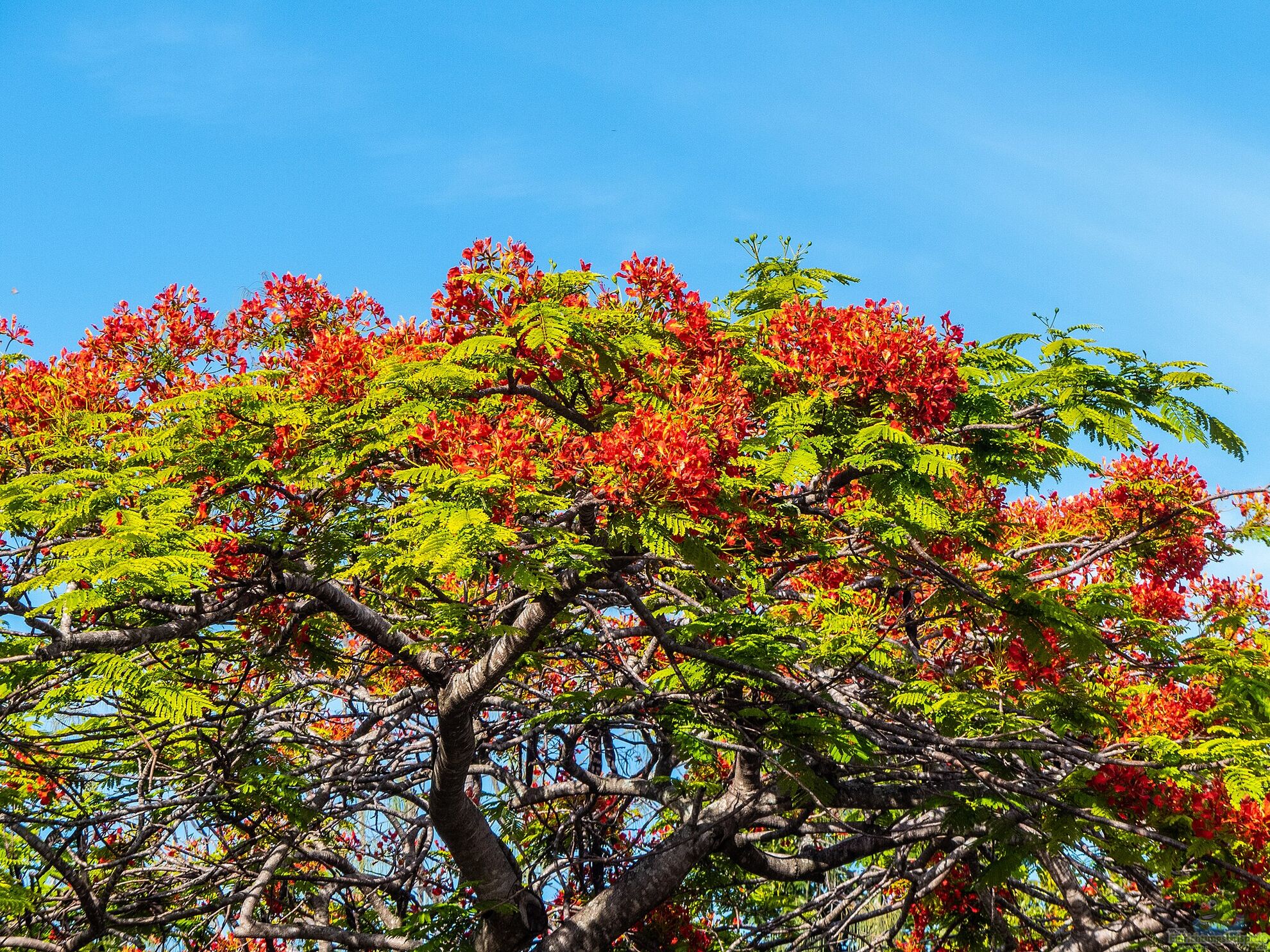 Der Flammenbaum (Delonix regia) gehört zur Familie der Fabaceae (Hülsenfrüchtler) und zur Unterfamilie der Caesalpinioideae. Ursprünglich stammt er aus Madagaskar, hat sich aber aufgrund seiner auffälligen Blüten und seiner dekorativen Erscheinung in tropischen und subtropischen Regionen weltweit verbreitet. Besonders häufig findet man ihn in Südostasien, der Karibik, Afrika und Teilen Südamerikas.