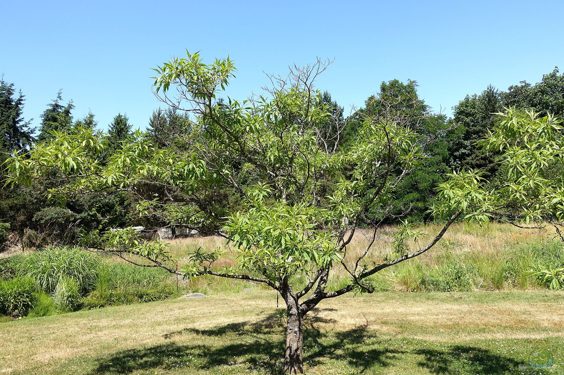 - Standort: Der Baum bevorzugt volle Sonne, kann aber auch in teilweiser Schattierung wachsen. Ein sonniger Standort fördert jedoch die beste Blütenproduktion.