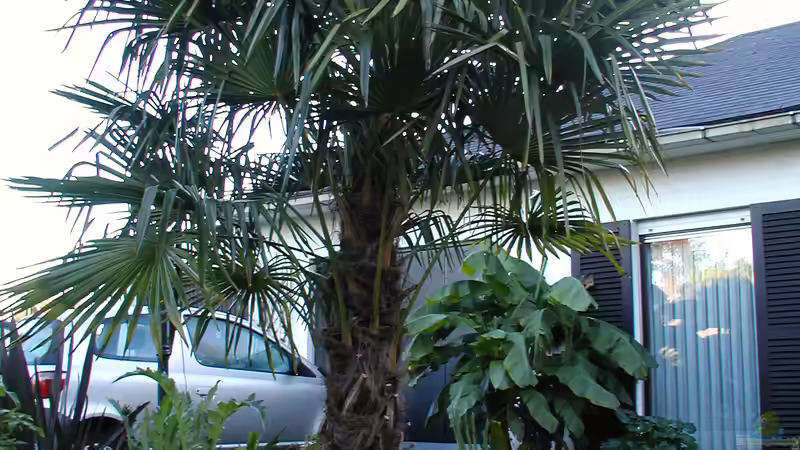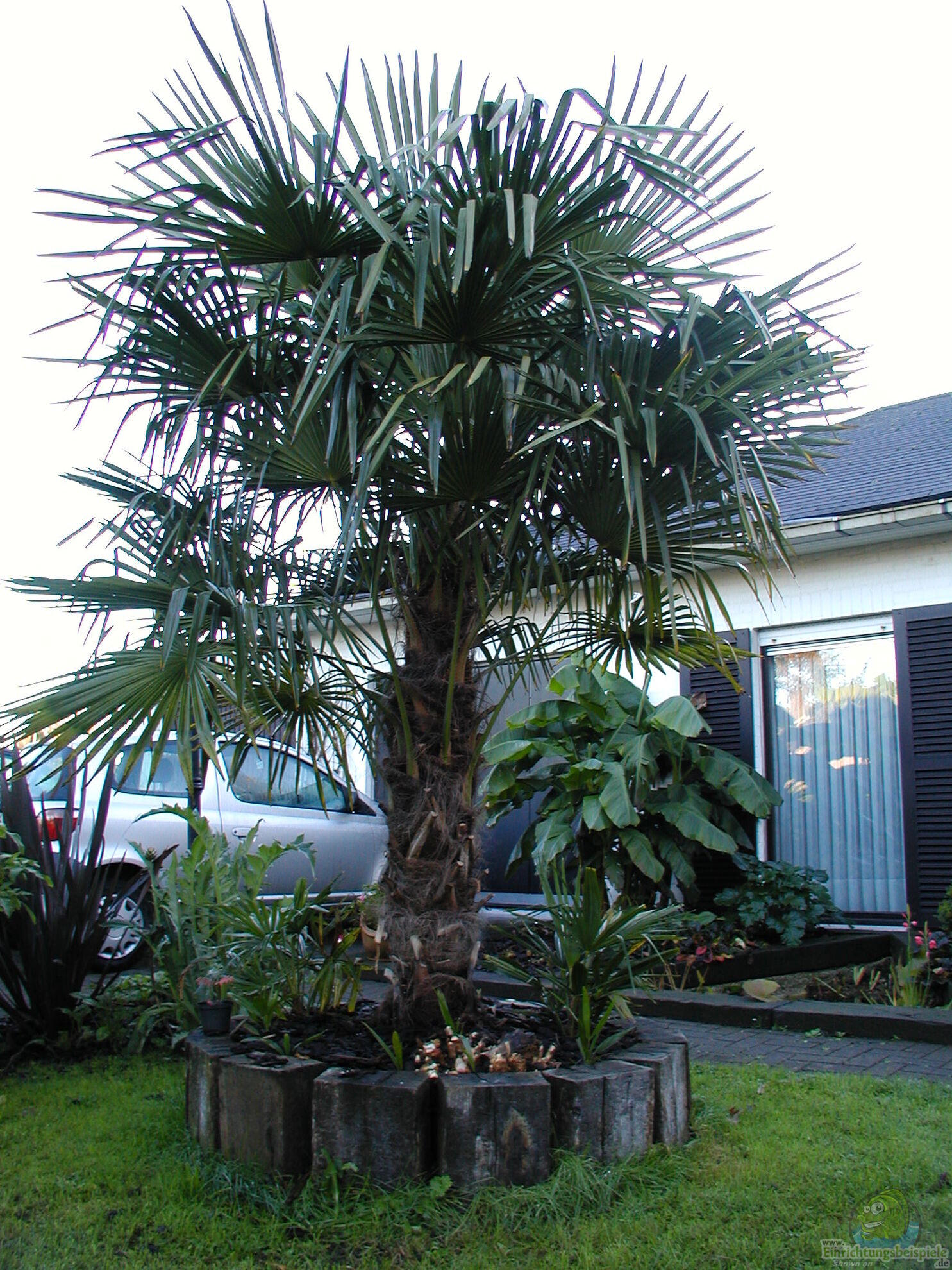 Trachycarpus fortunei eignet sich hervorragend für die Pflanzung am Gartenteich, da sie einen leicht erhöhten Feuchtigkeitsbedarf hat und das Mikroklima rund um den Teich genießt. Stellen Sie sicher, dass der Boden gut durchlässig ist, um Wurzelfäule zu vermeiden. Ein leicht erhöhter Standort direkt am Rand des Teichs ist ideal, um überschüssige Feuchtigkeit abzuleiten und gleichzeitig von der hohen Luftfeuchtigkeit zu profitieren.