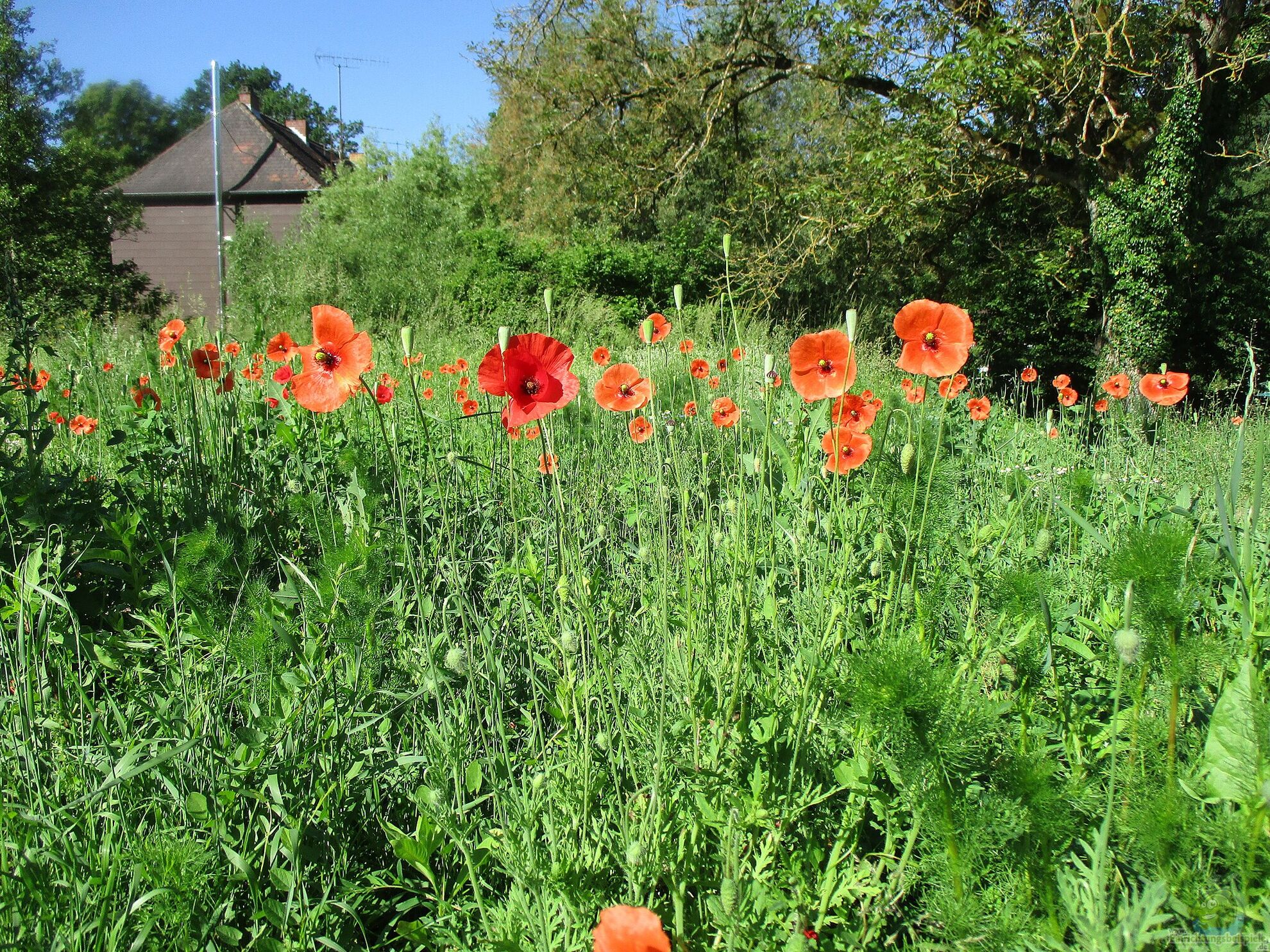 Obwohl Papaver dubium keine typische Sumpfpflanze ist, kann er sich an den trocken bis frisch-feuchten Randzonen eines Gartenteichs durchaus wohlfühlen – vorausgesetzt, der Boden ist gut drainiert und nicht dauerhaft nass. Besonders an sonnigen Böschungen oder in naturnahen Steingartenbereichen nahe dem Teich kommt die zarte Mohnblüte gut zur Geltung. Dabei wirkt sie nicht nur dekorativ, sondern dient auch zahlreichen Insekten als wertvolle Nektarquelle.
