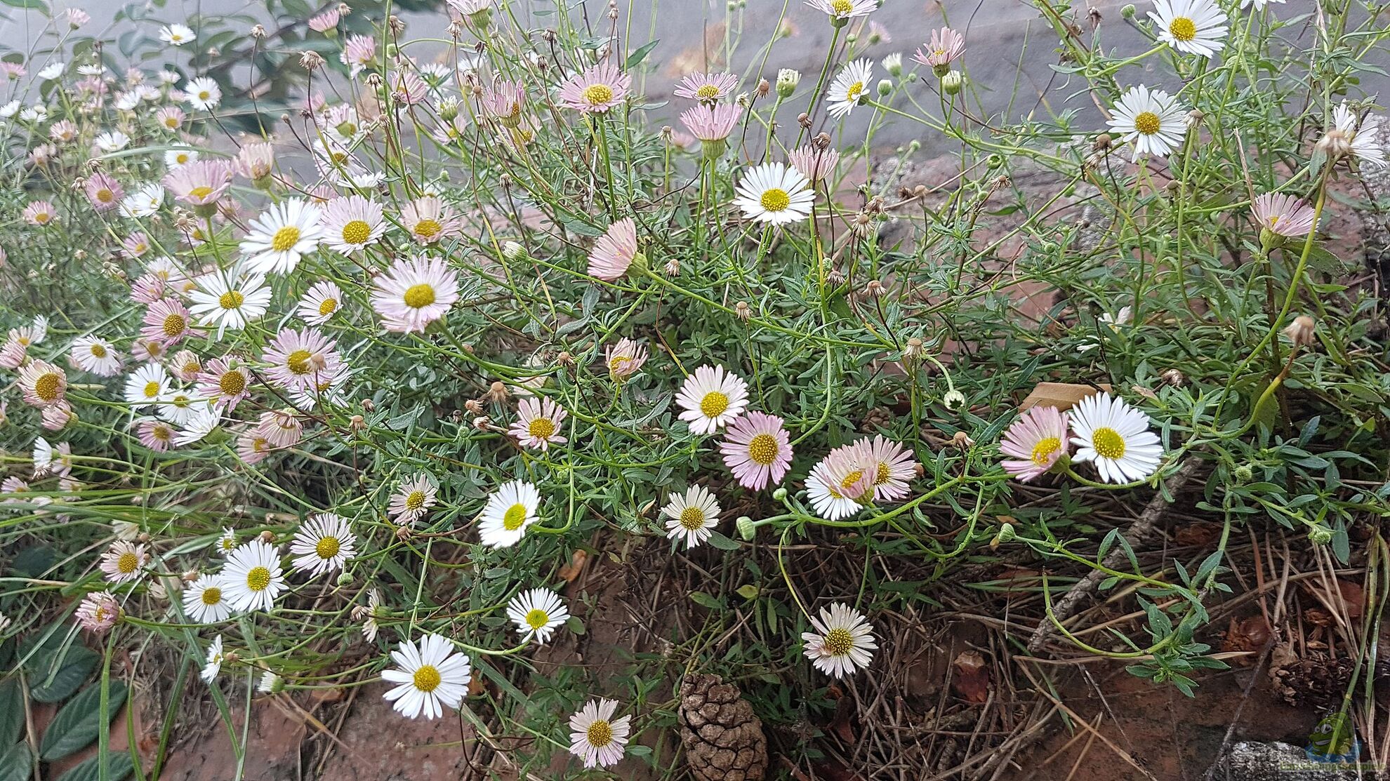 Erigeron karvinskianus blüht von Mai bis zum ersten Frost, oft bis in den Oktober hinein. Die Blüten sind zunächst weiß und färben sich mit der Zeit zart rosa bis violett, was dem Beet eine natürliche, verspielte Optik verleiht. Diese langanhaltende Blüte macht die Pflanze besonders wertvoll für naturnahe Gärten, Steingärten oder als Bodendecker.