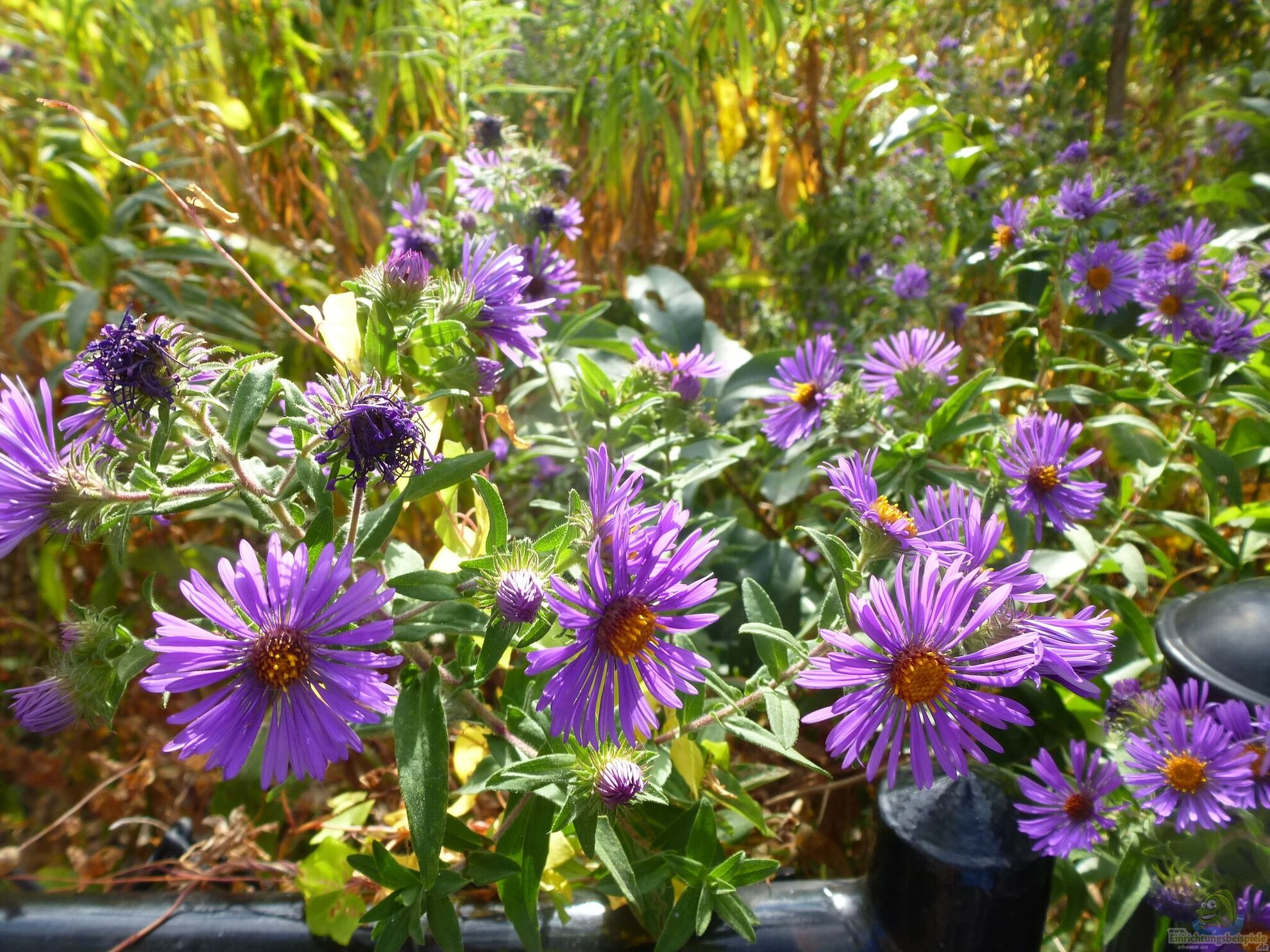 Die Aster novae-angliae eignet sich hervorragend für die Bepflanzung von Teichrändern oder in der Nähe von Wasserstellen im Garten. Ihr feuchtigkeitsliebender Charakter ermöglicht es ihr, an leicht sumpfigen oder gut durchfeuchteten Uferzonen zu gedeihen. Durch ihre hohe Wuchsform und die späte Blütezeit bietet sie einen tollen Kontrast zu niedriger wachsenden Teichpflanzen und setzt farbenfrohe Akzente, wenn andere Pflanzen bereits verblüht sind.