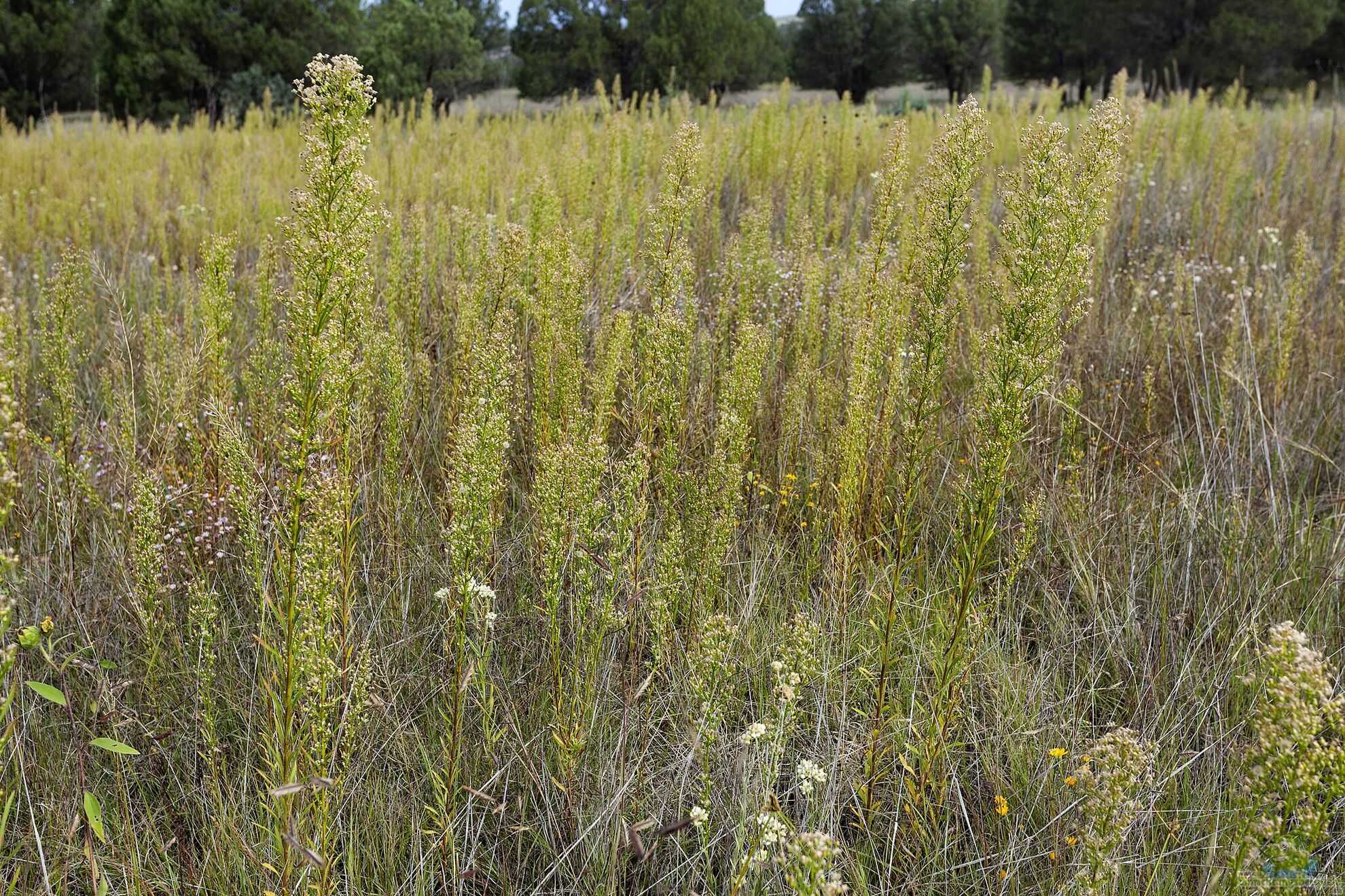 Erigeron canadensis ist eine einjährige bis zweijährige Pflanze, die eine Höhe von bis zu 1,5 Metern erreichen kann. Die Pflanze zeichnet sich durch ihre schlanken, aufrechten Stängel und ihre schmalen, lanzettförmigen Blätter aus, die leicht behaart sind. Die Blüten des Kanadischen Berufkrauts sind klein und unscheinbar, meist weiß oder hellrosa, und bilden dichte, rispenartige Blütenstände an der Spitze der Pflanze. Die Blütezeit erstreckt sich von Juli bis Oktober, wodurch sie eine wertvolle Nahrungsquelle für Insekten im Spätsommer und Herbst darstellt. Nach der Blüte bildet die Pflanze kleine, flugfähige Samen, die sich weit verbreiten und so zur schnellen Ausbreitung beitragen.