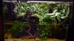 Algen sind kaum vorhanden. Tatsächlich musste ich erst einmal die Frontscheibe klären, um einen leichten Belag zu entfernen. Das Becken ist meiner Meinung nach nicht überbesetzt und Algenfresser (Otocinclus, Schnecken, Garnelen) sind reichlich vorhanden.