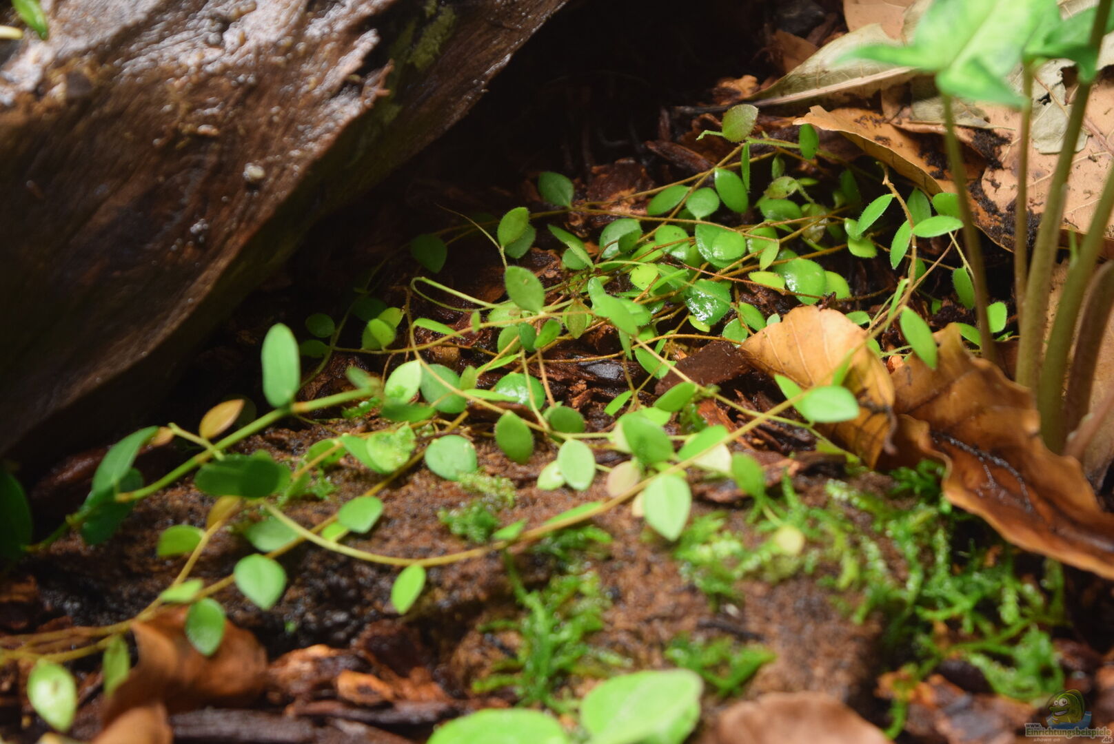 Ansonsten gibts realitiv wenig zu berichten, da das Becken eigentlich ein Selbstläufer ist. Es werden kaum Wasserwechsel gemacht, da das Wasser auch kaum Belastungen durch die Krötchen ausgesetzt ist. Die Pflanzen wachsen relativ gemählich, da auch wenig gedüngt wird. Die Hauptarbeit, wenn man das so nennen möchte, besteht aus Auffüllen und Warten der Beregnungsanlage, Düngung der Pflanzen über einen Sprüher und Fütterung mit Springschwänzen und tropischen Asseln.
