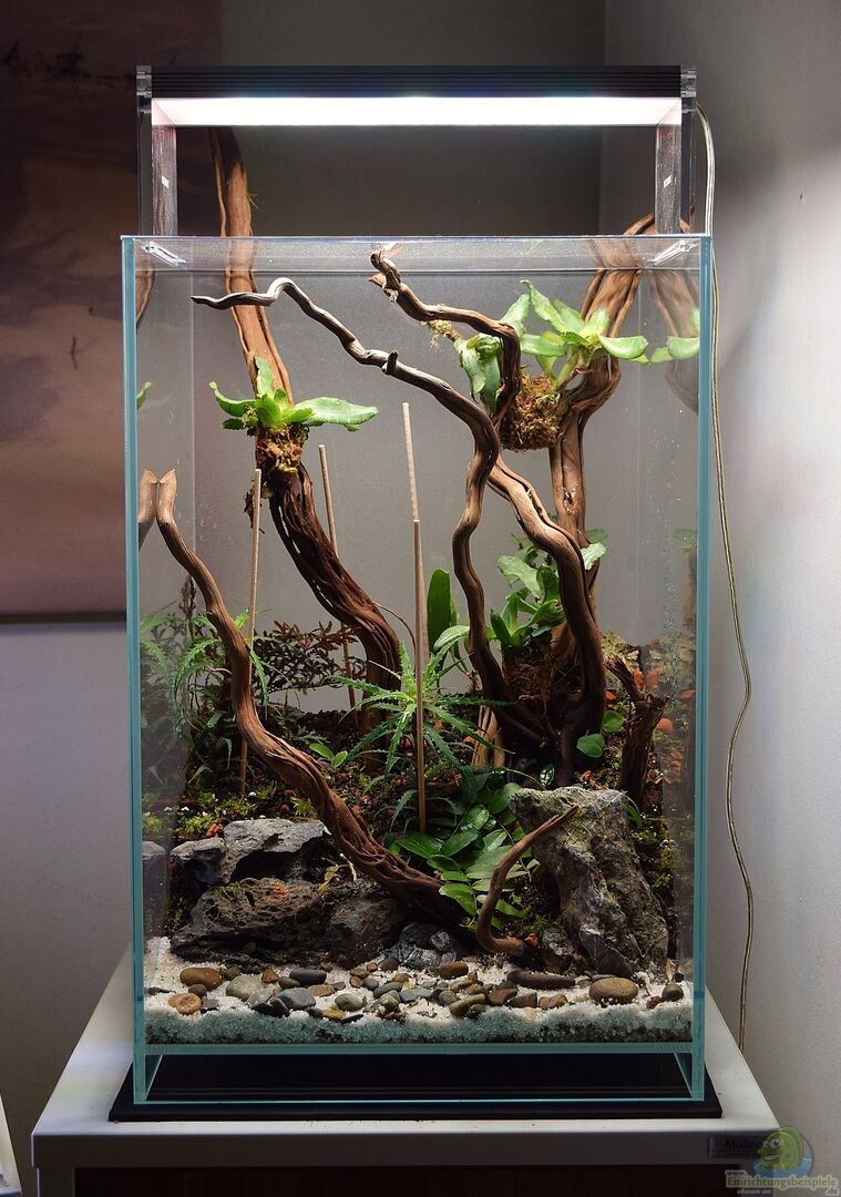 Crypthanthus microglazioui, Neoregelia Akeso, Marcgravia rectifolia, Pyrrosia lanceolata, Selaginella erythropus, Taxiphyllum Christmas, Marcgravia umbellata, Ficus spec. Borneo
