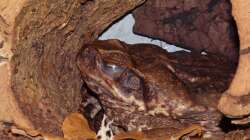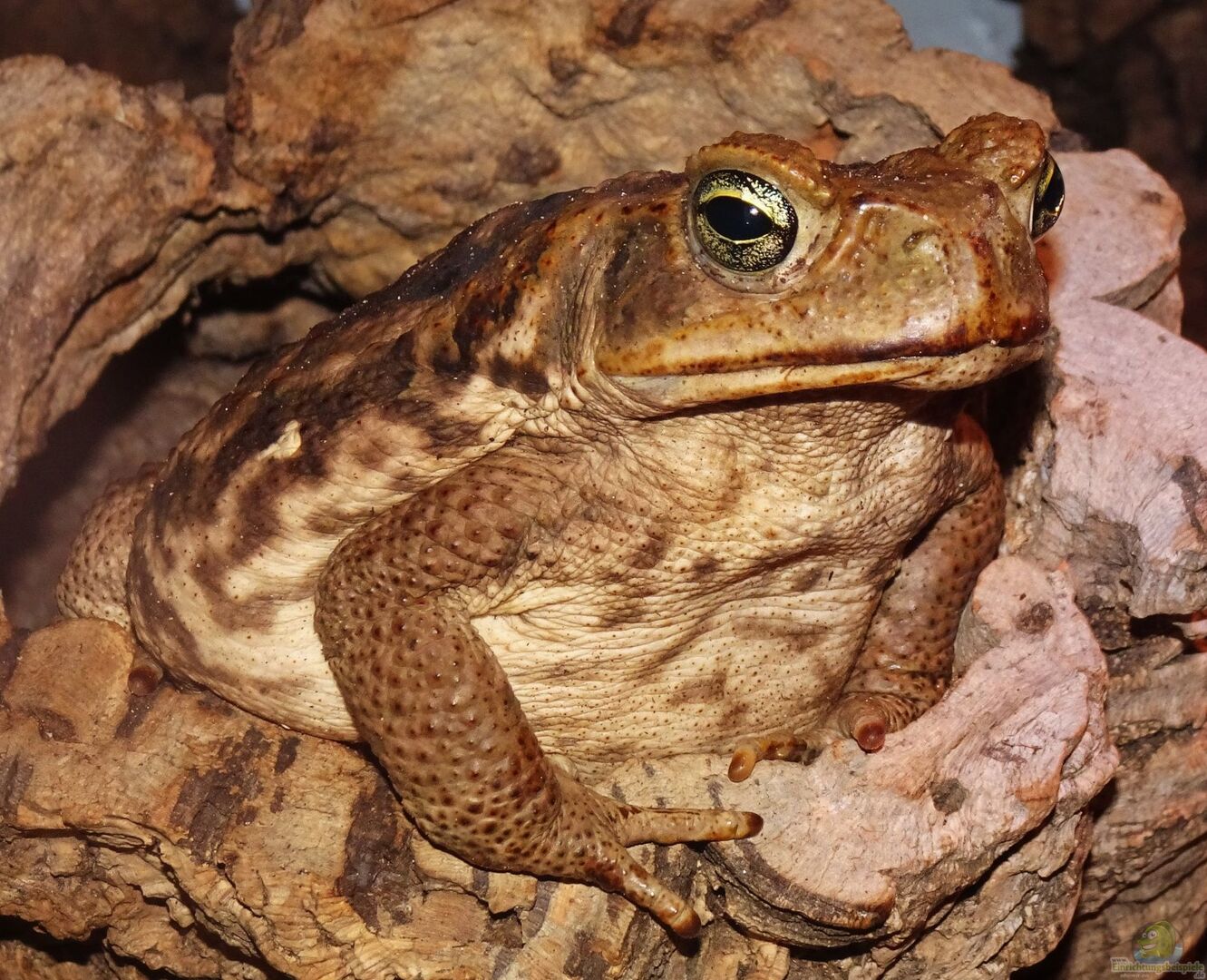 Ich liebe alles Lurchige seit meinem 7. Lebensjahr. Im Spreewald, in Nähe eines Grabenzuges, aufgewachsen, den Kescher vom Vater in die Hand gedrückt, waren es zunächst die Wasserfrösche, die begeistert in Muttis Küche geschleppt wurden. Die Eltern waren dort noch der Meinung, dass dies eine niedliche Phase sein würde, die sich " verwächst". Nunja, es sind fast 30 Jahre ins Land gegangen und es gab seit dem, noch unerfahrenen Fangen aus der Natur, keinen weiteren Tag ohne diese Viecher in meinem Leben. Schon ziemlich früh wuchs die Begeisterung gerade zu den von vielen Menschen als besonders eklig empfundenen Kröten. Damals, wie heute, können sie mir gar nicht gro??, dick und warzig genug sein. In der Studienzeit und mit dem neuen Wohnsitz in Berlin, war es dann möglich über das Internet und Insider an die wirklichen Riesenkröten zu gelangen. Für mich eine Art Schlaraffenland, in welchem ich mich von den hei??geliebten Kröten umrundet sehe. Den Anfang machte mein Rüdiger, welcher zu den leider nicht mehr ergatterbaren Rhinella schneideri gehörte. Ihn pflegte ich bei einer übernommenen Grö??e von 15 cm weitere 5 Jahre. Schmerzlich musste ich mich durch einen parasitäten Befall durch Futtermittel von ihm trennen. Als Ersatz kam dann die oben beschriebene El??beth, die mein Krötenherz völlig entflammte, denn ich durfte bis dato noch nie so ein gro??es Tier pflegen.