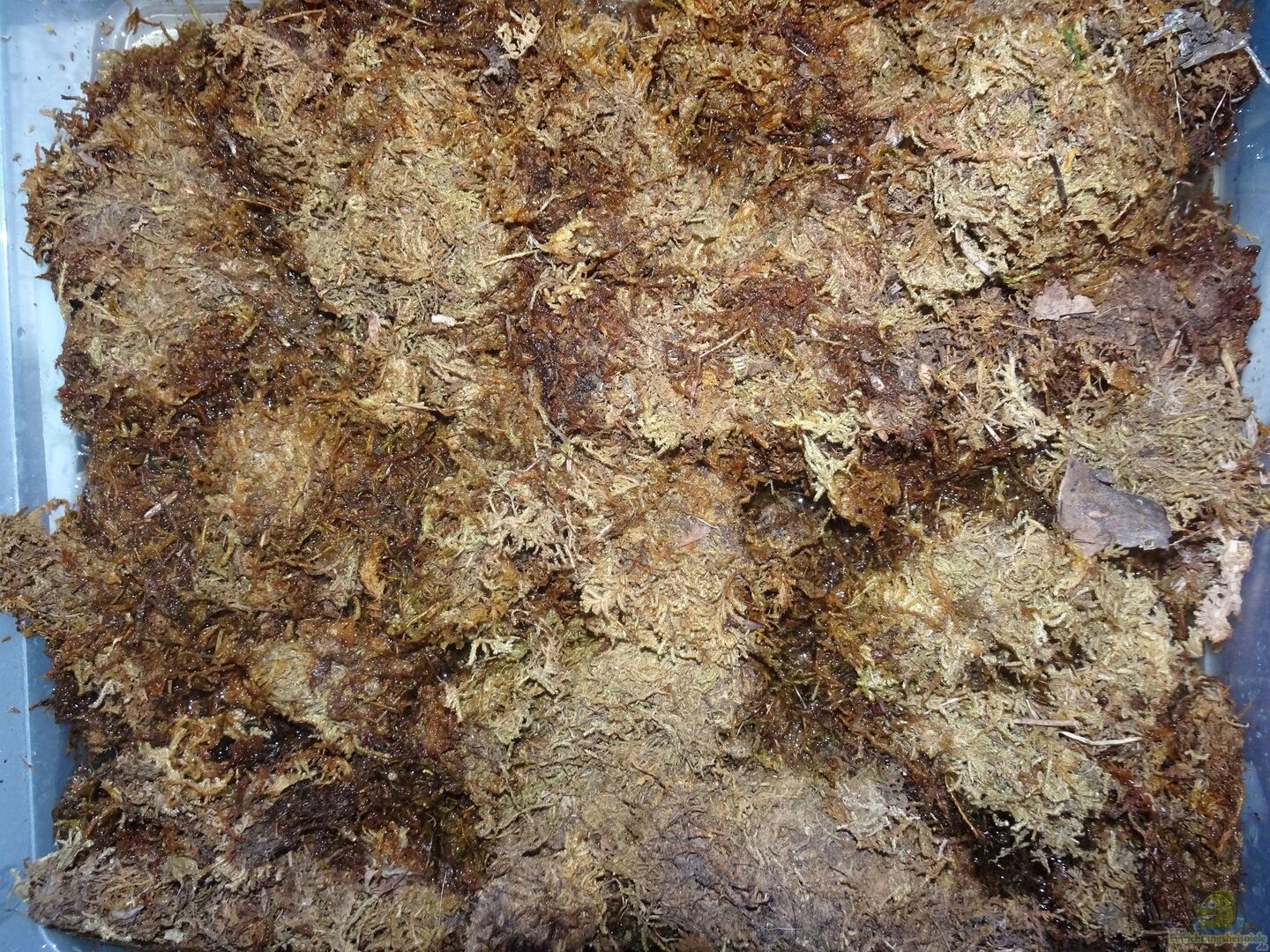 Der Bodengrund ist eine Mischung aus 30L JBL Terra Basis, gesammeltem Eichenlaub (vorher abgekocht) und zwei Lucky Reptile Sphagnum Moos Ziegeln, sowie Kleinstlebewesen aus der Bodenabwehr. Ein paar Flusssteine dienen als Verankerung für Holzaufbauten.