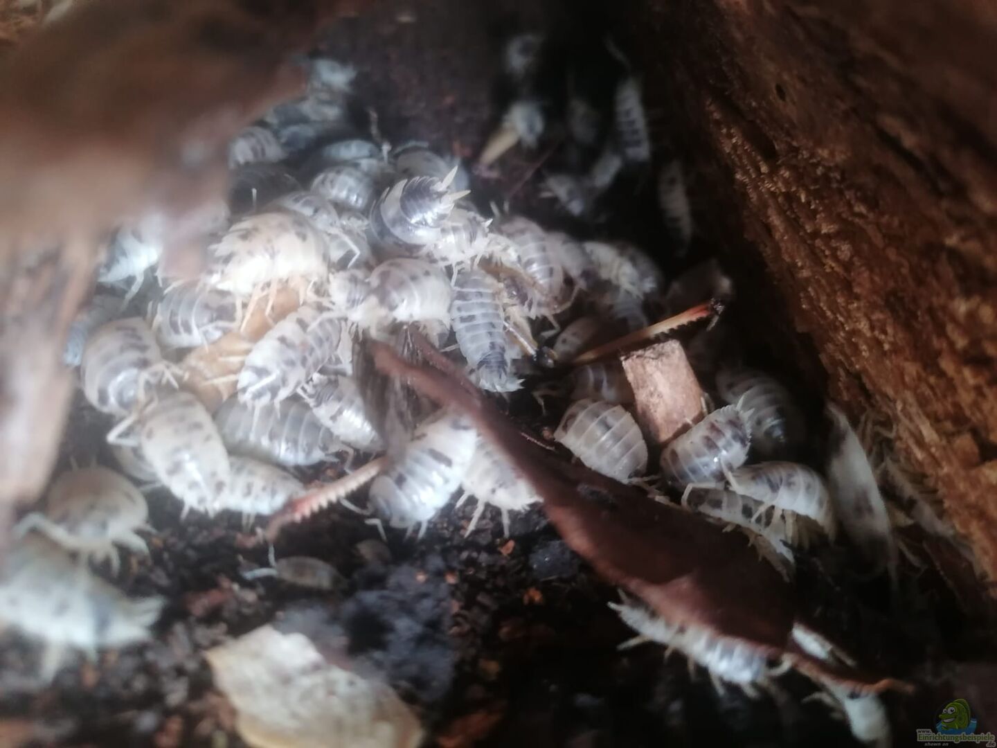 eine ungezählte Anzahl an Panda-Asseln Porcellio laevis