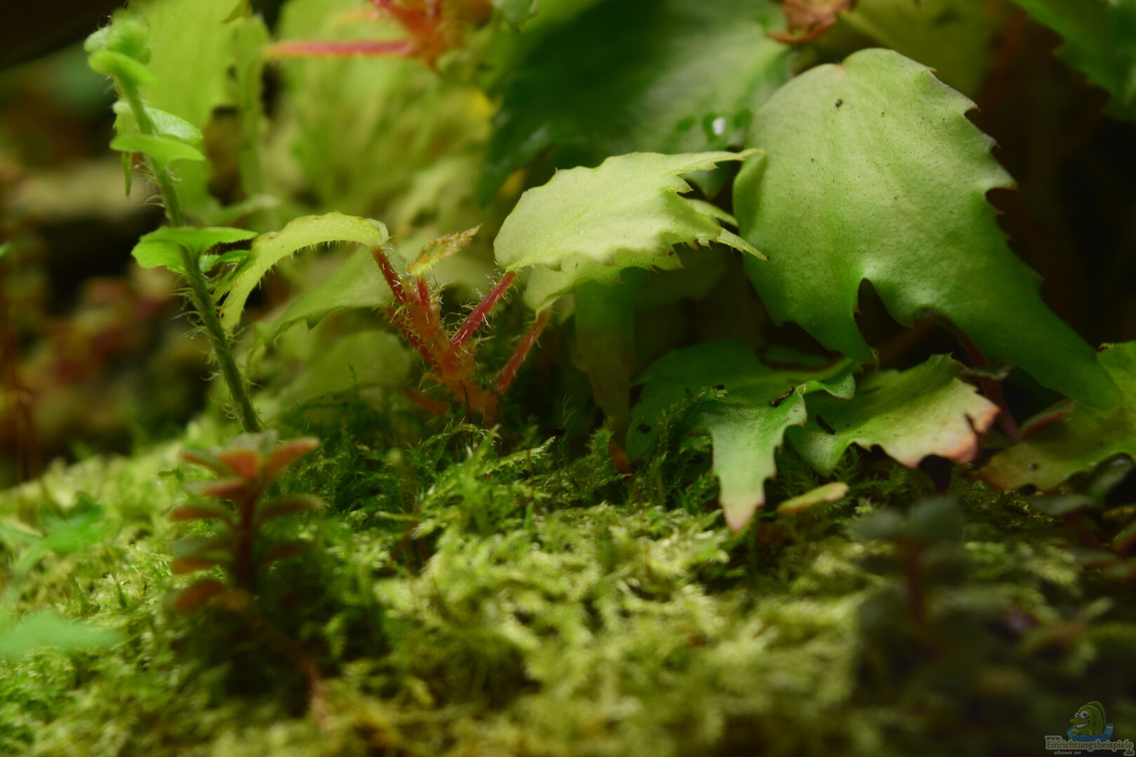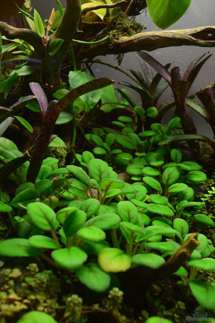 Neoregelia Akeso, Neoregelia ampullaceae purpurea, Begonia schulzei, Begonia prismatocarpa, Polypodium formosanum, Pleopeltis macrocarpa, Marcgravia umbellata, Philodendron hederaceum (Naturform Surinam), Anthurium scandens, Ficus spec. Peru (Stecklinge), Paradrynomaia spec. Surinam, Pilea depressa (Stecklinge), Pleurothalis rubella, Pleurothalis grobyi