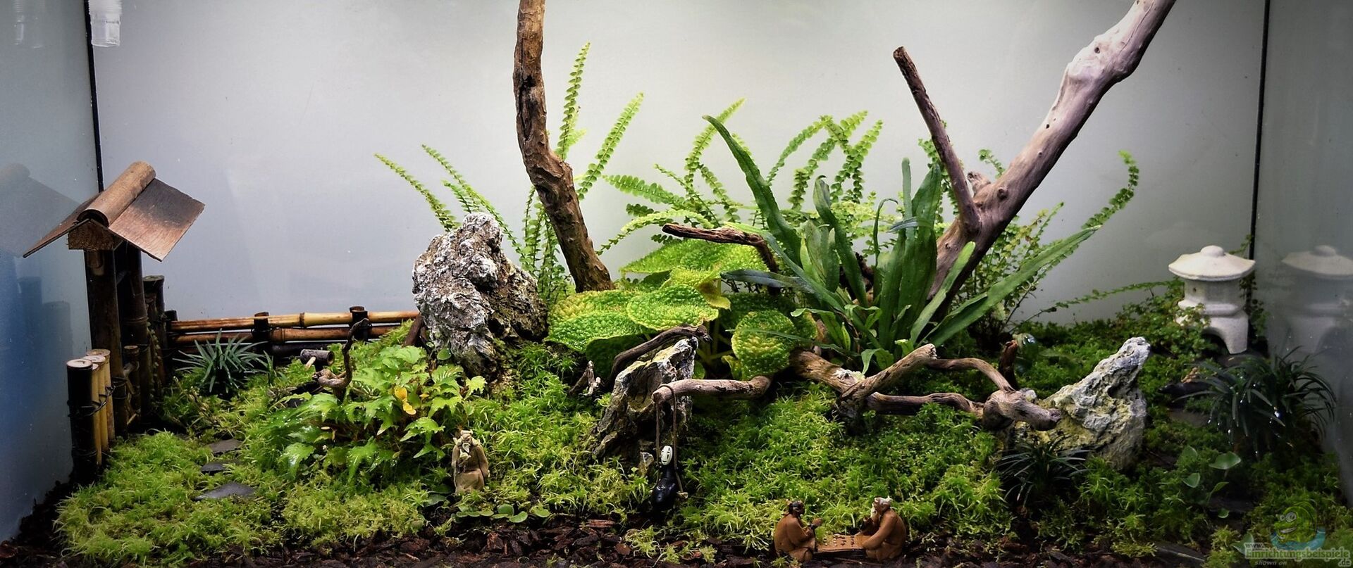 Bei diesem Terrarium wurde versucht einen japanischer Garten nachzugestalten. Grundlage waren Seiryu-Steine, die sich im Aquascaping grosser Beleibtheit erfreuen.