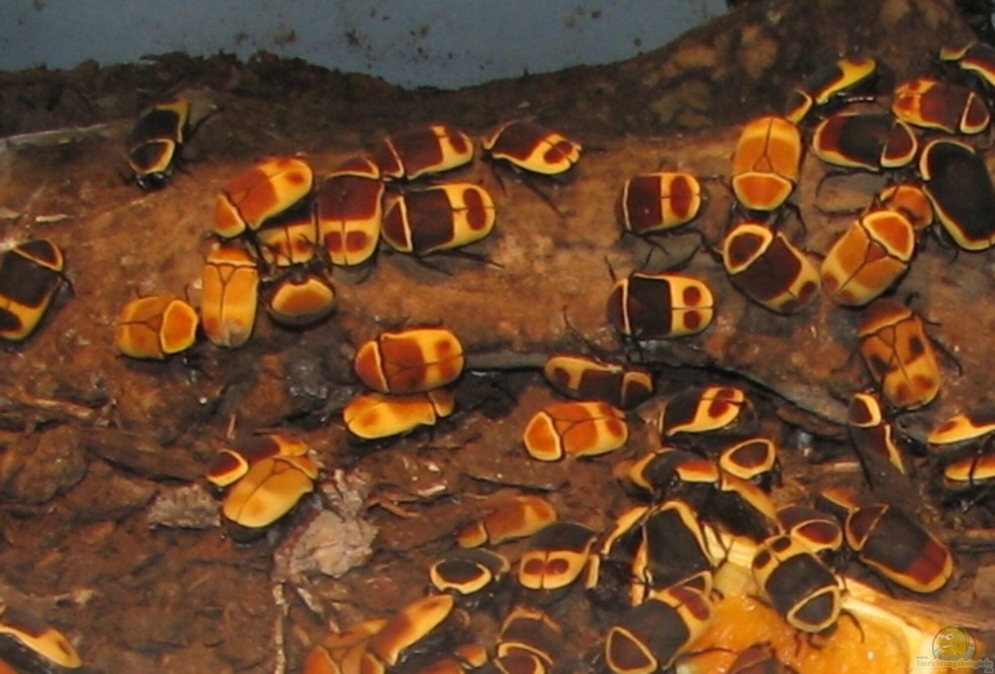 - Kletteräste, Rindenstücke und künstliche oder echte Pflanzen bieten den adulten Käfern Rückzugsmöglichkeiten.