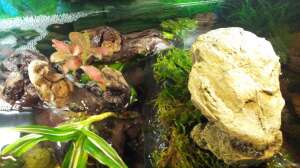 Im Terrarium wird morgens und abends etwas mit Wasser gesprüht. Für die Flüssigkeitsaufnahme ist eine zusätzliche Wasserschale wichtig, die täglich gereinigt wird.