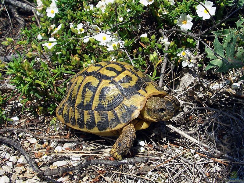 Bei Testudo hermanni (Griechische Landschildkröte) handelt es sich um eine Schildkröte aus der Familie der Landschildkröten (Testudinidae), dir ursprünglich aus dem europäischen Teil des Mittelmeerraumes stammt.