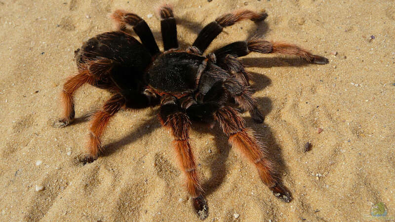 Brachypelma boehmei erreichen eine Länge von 8cm und können über 10 Jahre alt werden, die Männchen sterben früher.