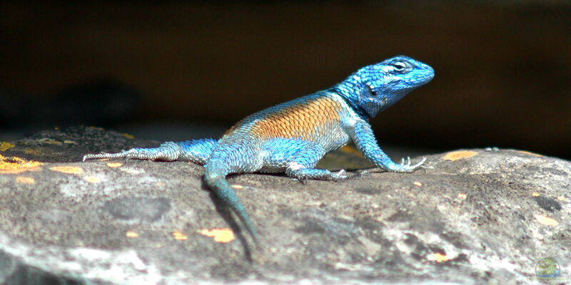 Die Bauchseite ist bei Männchen oft mit zwei markanten, türkis-blauen Flecken versehen, die vor allem in der Balzzeit intensiver erscheinen. Weibchen hingegen sind meist etwas matter gefärbt und haben weniger auffällige Bauchzeichnungen.