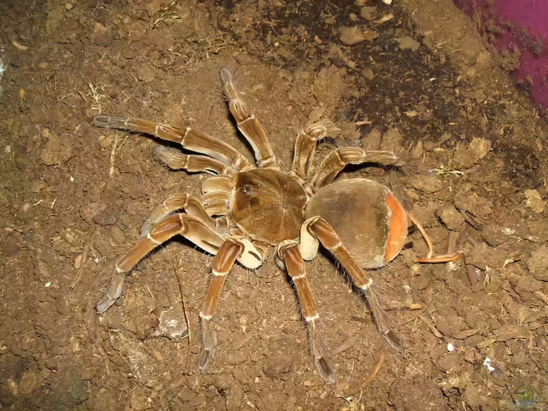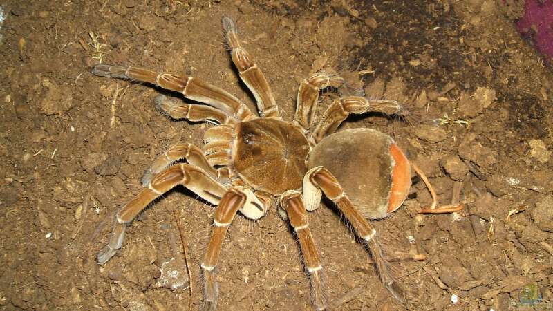Theraphosa stirmi erreichen eine Länge von 10cm und können über 10 Jahre alt werden, die Männchen sterben früher.
