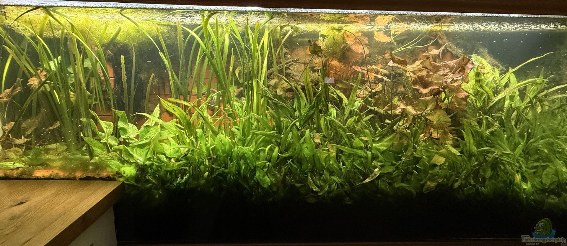Allerdings musste ich hier einige Kompromisse eingehen. Der Tigerlotus dient als aquarientauglicher Ersatz für Lotuspflanzen aus dem asiatischen Raum, die Restbepflanzung ist aus dem gro??flächigen asiatische Raum zusammengetragen.