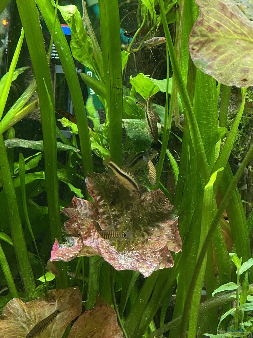 Die Veränderung der Bepflanzung hin zu feingliedrigeren Pflanzen und mehr Grasartigen hat eine Veränderung des Verhaltens mit sich gebracht: Die Fische zeigen sich im Licht, halten sich gern im freien Wasser auf und zeigen wunderschöne Farben. Sie sind nicht die mutigsten und frechsten Fische, brauchen etwas den Rückhalt der Schmerlen, aber von der ursprünglichen Scheu ist nichts mehr zu sehen.
