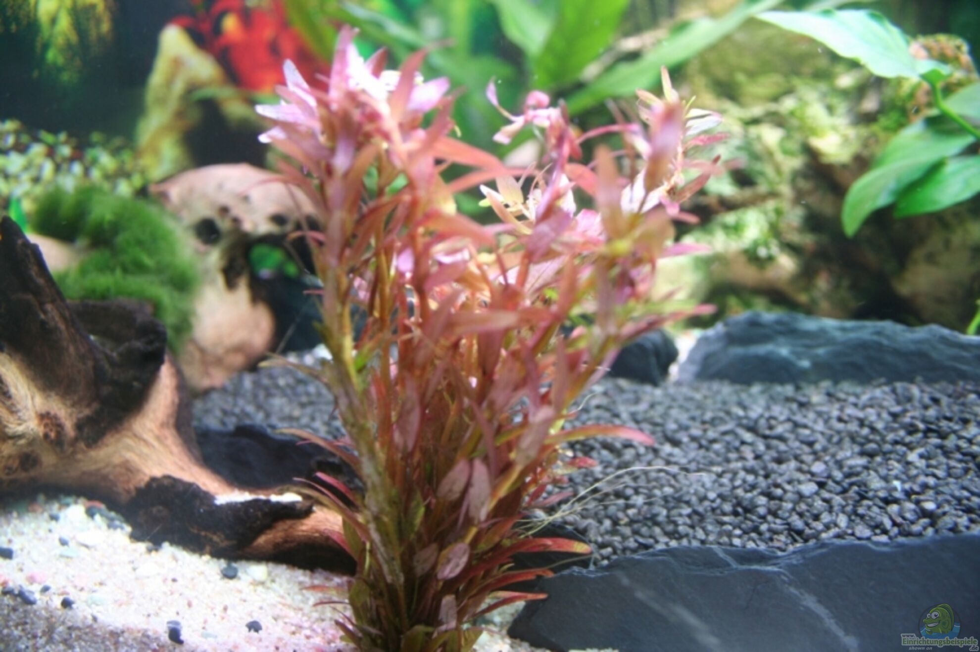 Ammannia praetermissa (Rotgrüne Nesaea) ist eine robuste und schnellwüchsige Stängelpflanze aus der Familie der Weiderichgewächse (Lythraceae). Aufgrund ihrer Anpassungsfähigkeit und ihres kräftigen Wuchses findet sie häufig Verwendung in mittleren bis großen Aquarien, insbesondere als strukturgebende Hintergrundpflanze.