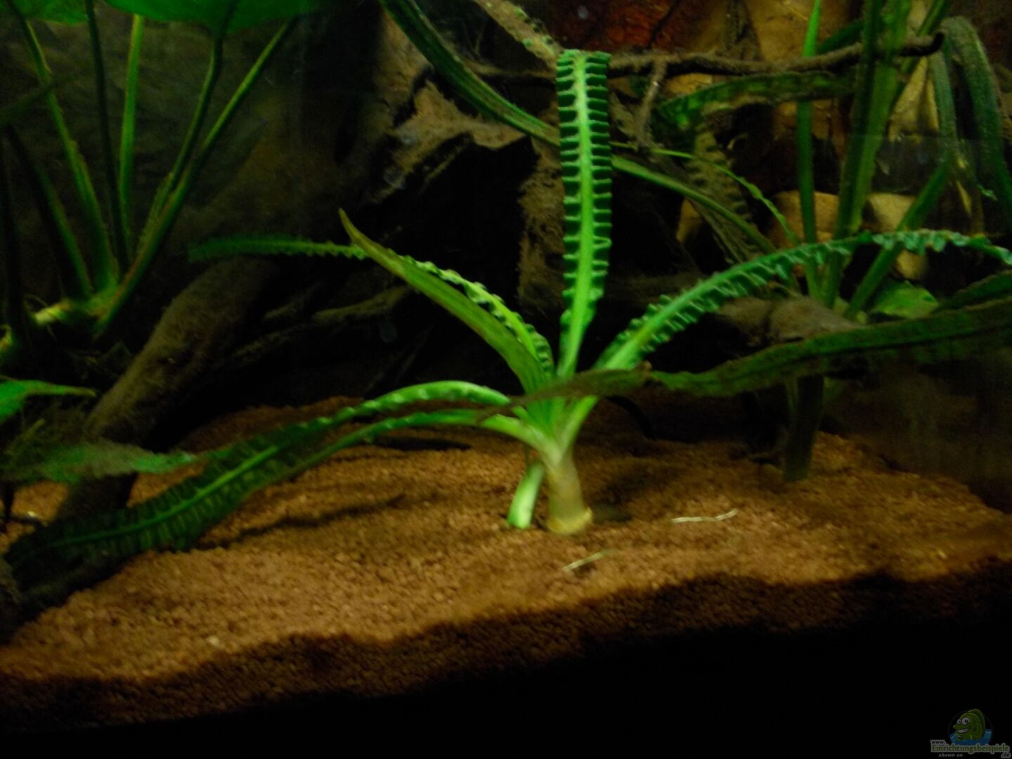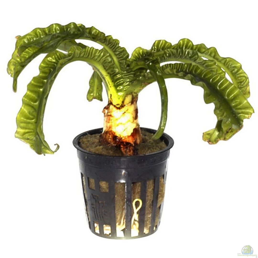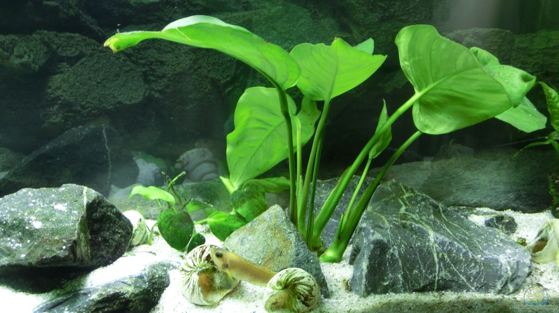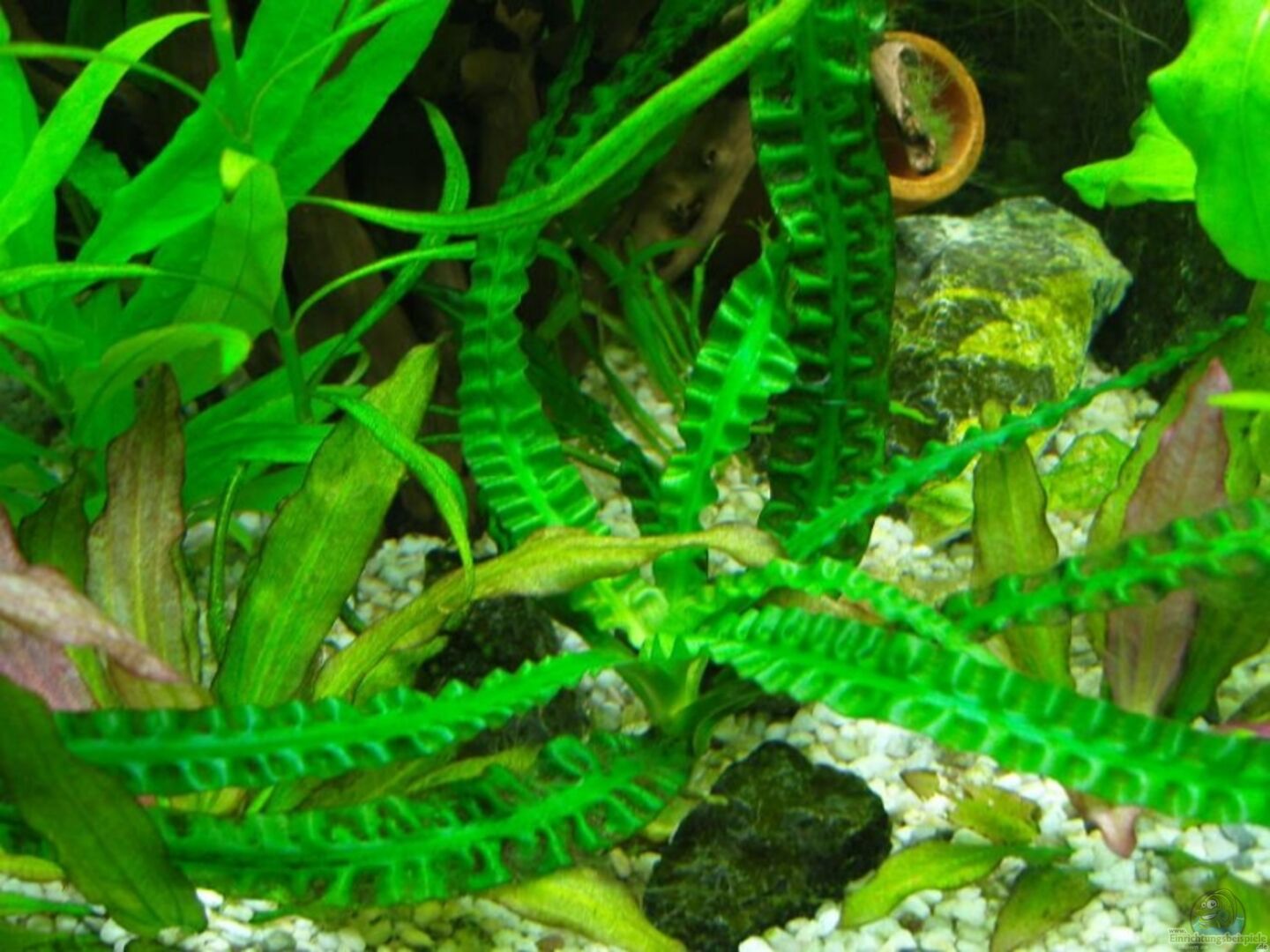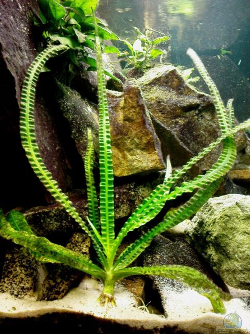 Crinum natans (Breitblättrige Hakenlilie) ist eine großwüchsige Wasserpflanze mit breiten, bandförmigen Blättern, die sich gut als Solitärpflanze für große Aquarien eignet. Als Vertreterin der Amaryllisgewächse beeindruckt sie nicht nur durch ihre stattliche Erscheinung, sondern auch durch ihre gelegentliche Blütenbildung unter günstigen Bedingungen.