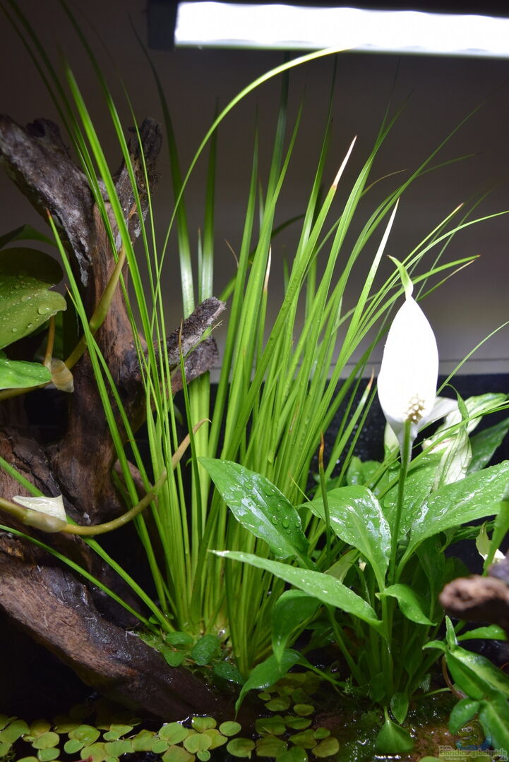 Acorus gramineus, auch als Graskalmus bekannt, ist eine attraktive Sumpf- und Wasserpflanze, die sich hervorragend für die Verwendung in Aquarien eignet. Mit ihrem dichten, grasartigen Wuchs ist sie eine beliebte Wahl für die Gestaltung von Aquarienlandschaften. Die Pflanze ist pflegeleicht und stellt nur geringe Anforderungen an die Wasserbedingungen. In kalten Klimazonen ist sie jedoch nicht winterfest und sollte vor Frost geschützt werden, wenn sie außerhalb des Aquariums in einem Gartenteich oder ähnlichem Bereich verwendet wird.