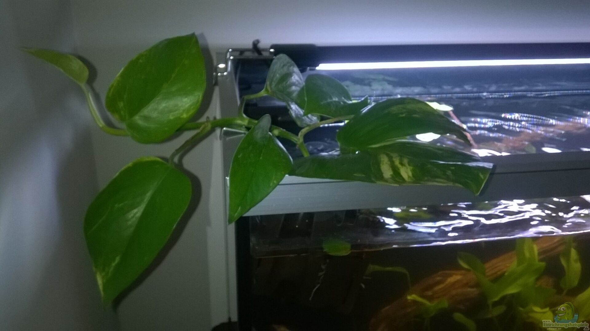 Die Efeutute ist dabei ein anspruchsloses Gewächs, das einfach als Trieb oder als abgeschnittener Zweig so platziert werden kann, dass ein Teil ins Aquarium ragt. Schnell bildet die Efeutute Wurzeln und wächst.