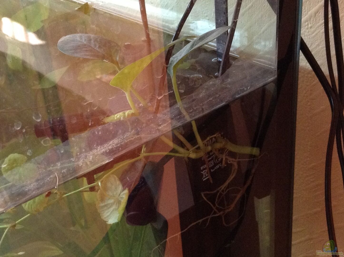 Die Efeutute kann aber auch einfach in einem Wasserglas als Steckling so lange gezogen werden, bis Wurzeln vorhanden sind, bevor die Pflanze dann ins oder auf das Aquarium gesetzt wird.