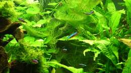 Das Zarte Hornblatt (Ceratophyllum submersum) ist eine relativ kleine, aber sehr anpassungsfähige Wasserpflanze, die in Aquarien und Teichen gleichermaßen gut gedeiht. Sie zeichnet sich durch ihren filigranen Wuchs und die dünneren, weniger robusten Blätter im Vergleich zum Ceratophyllum demersum (Hornblatt) aus. Aufgrund ihres schnellen Wachstums und der Fähigkeit, überschüssige Nährstoffe aus dem Wasser zu entziehen, wird sie häufig in Aquarien eingesetzt, um die Wasserqualität zu verbessern.