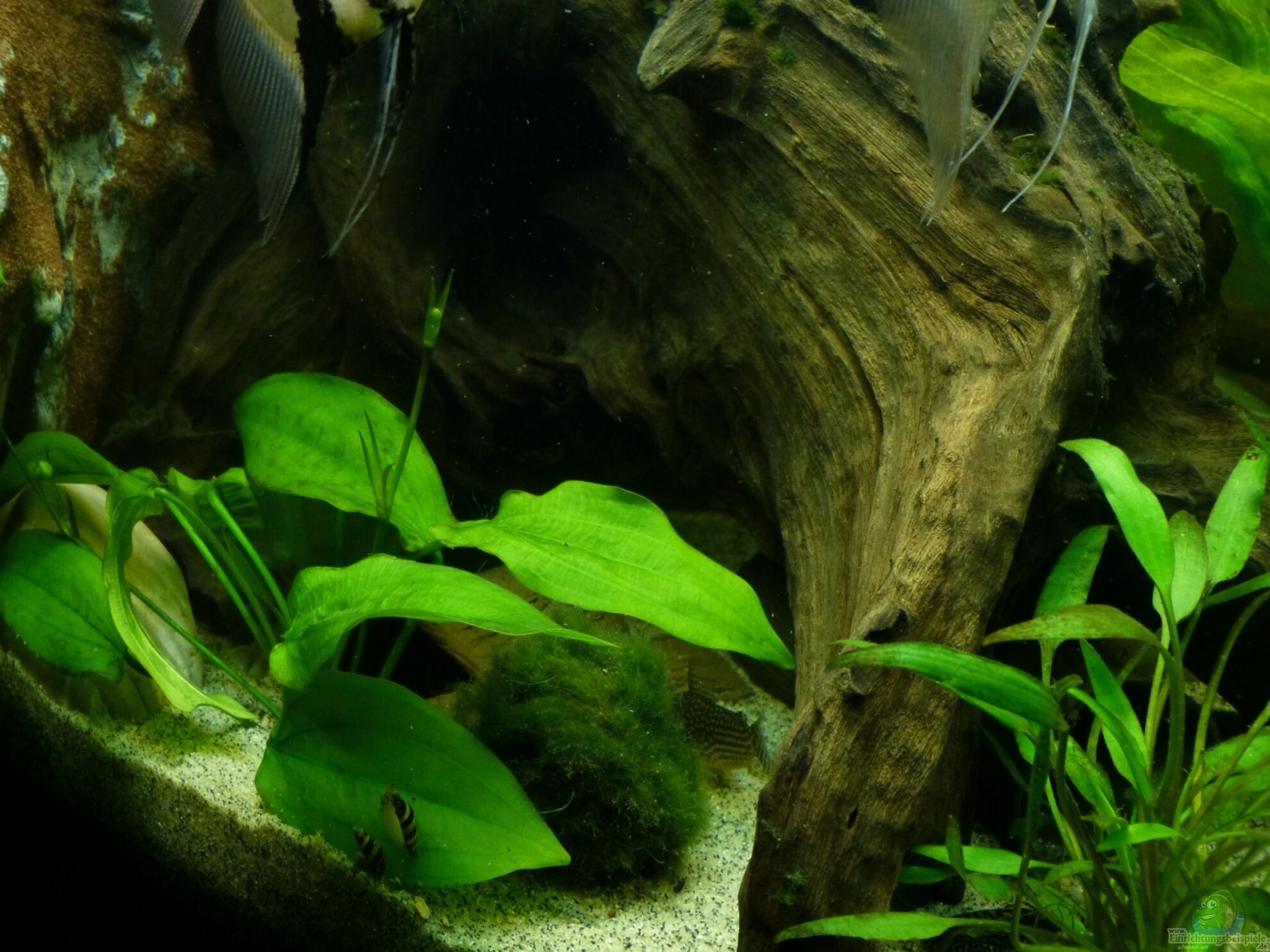 Diese Schwertpflanze zeichnet sich durch ihre langen, schmalen Blätter aus, die an langen Stängeln sitzen und sich horizontal ausbreiten. Die Blätter sind glänzend und haben eine kräftig grüne Farbe. Sie wachsen relativ flach und breit, wodurch sie einen buschigen Eindruck im Aquarium hinterlassen. Ihre Wurzeln sind kräftig und weit verzweigt, was sie besonders stabil macht. Bei optimalen Bedingungen kann sie eine Höhe von 30 bis 40 cm erreichen, wobei ihre Blätter sich horizontal ausbreiten und so den verfügbaren Raum im Aquarium ausfüllen.