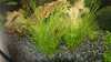 Die Pflanze zeichnet sich durch ihre dünnen, hellgrünen, grasähnlichen Blätter aus, die in dichten Büscheln aus dem Boden wachsen. Die Blätter sind schmal und können eine Länge von bis zu 5 cm erreichen, wobei sie in ihrer Wuchsform leicht über den Boden kriechen. Die Pflanze bildet einen dichten Teppich, der das Aquarium dekorativ aufwertet. Ihre feinen, fächerartigen Blätter verleihen ihr eine zarte und elegante Erscheinung, was sie zu einer idealen Wahl für Aquarien mit natürlichen, grünen Böden macht.