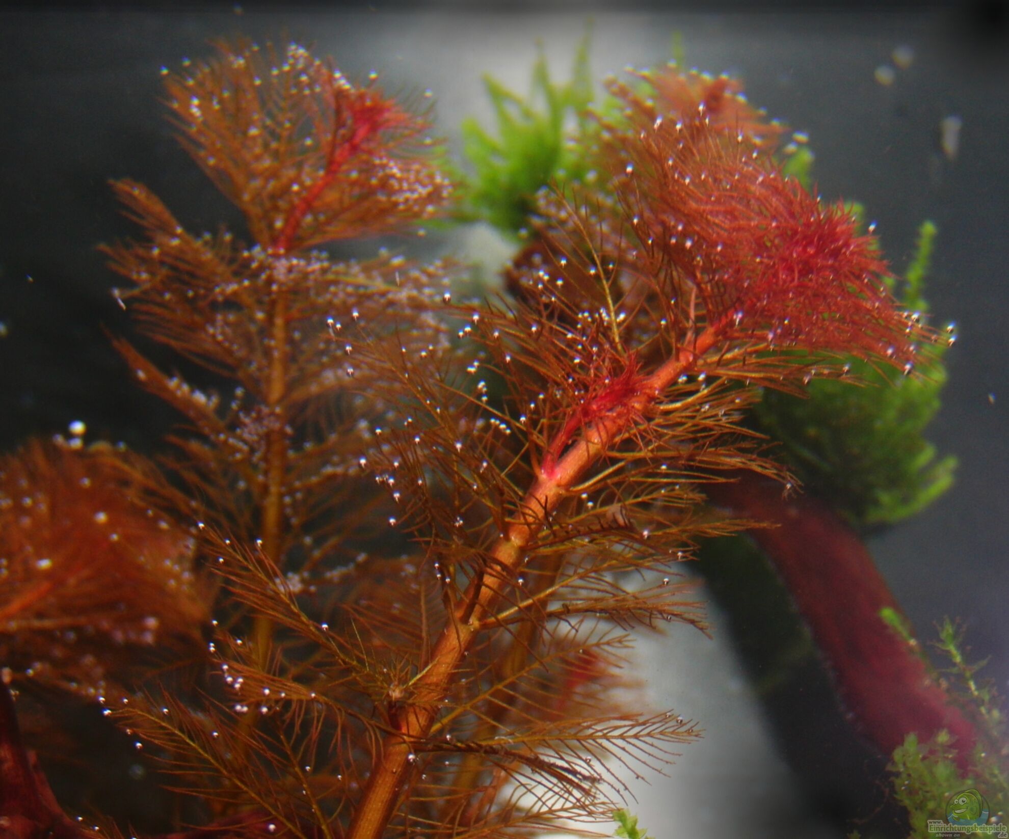 Myriophyllum tuberculatum, auch als Rotblättriges Tausendblatt bekannt, ist eine auffällige Wasserpflanze aus der Gattung Myriophyllum, die in tropischen Gewässern Südamerikas heimisch ist. Besonders geschätzt wird die Pflanze wegen ihrer dekorativen roten bis rötlich-grünen Blattfärbung, die einen starken Kontrast zu den meisten anderen Wasserpflanzen bietet. Sie eignet sich sowohl für Aquarien als auch für Teiche und verleiht diesen einen exotischen Charme.