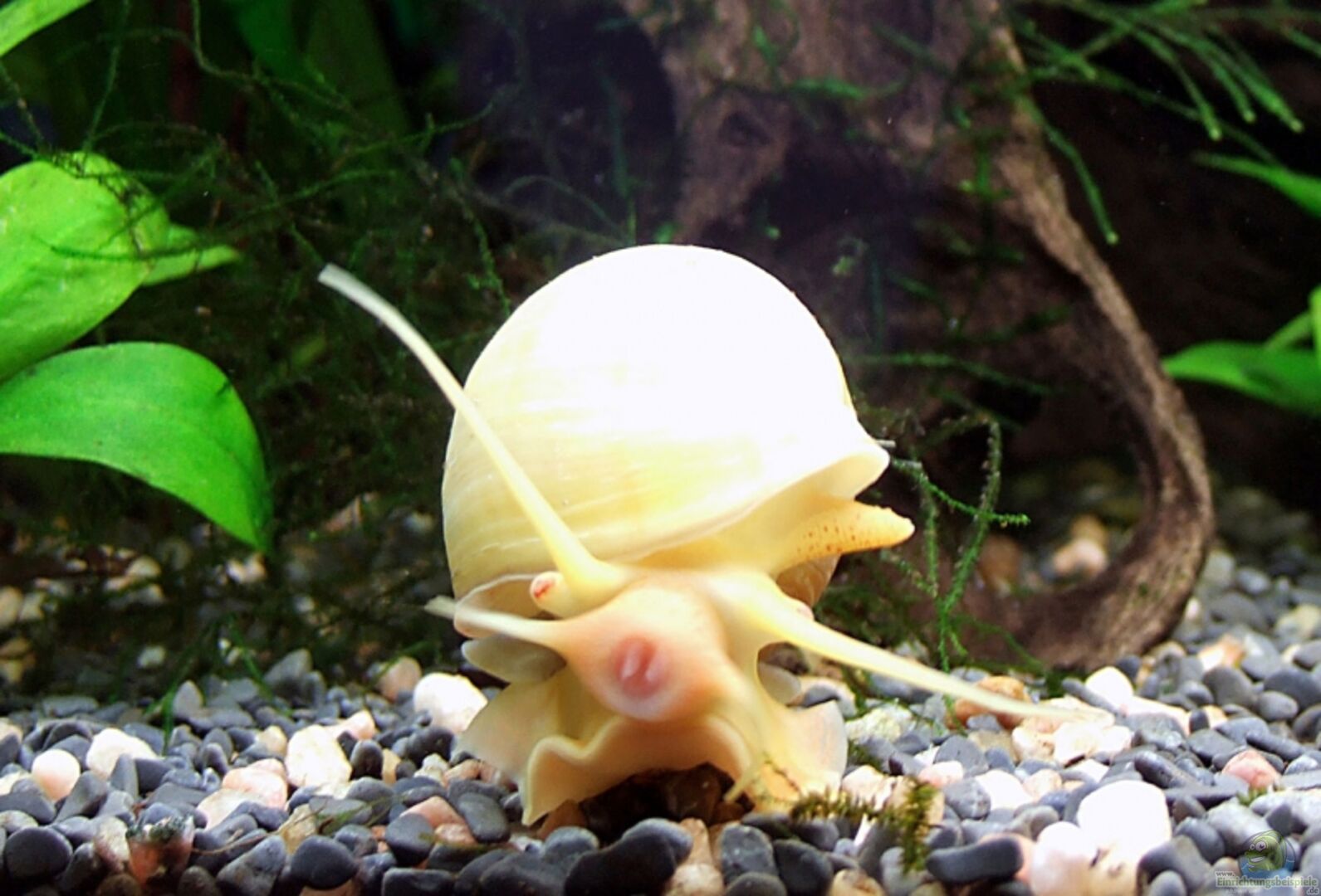 - Aquariengröße: Ein Aquarium ab einer Größe von 54 Litern und einer Kantenlänge ab 60 cm ist ausreichend für eine kleine Gruppe dieser Schnecken. Sie benötigen jedoch Platz, um sich frei zu bewegen und den Boden nach Nahrung abzusuchen.