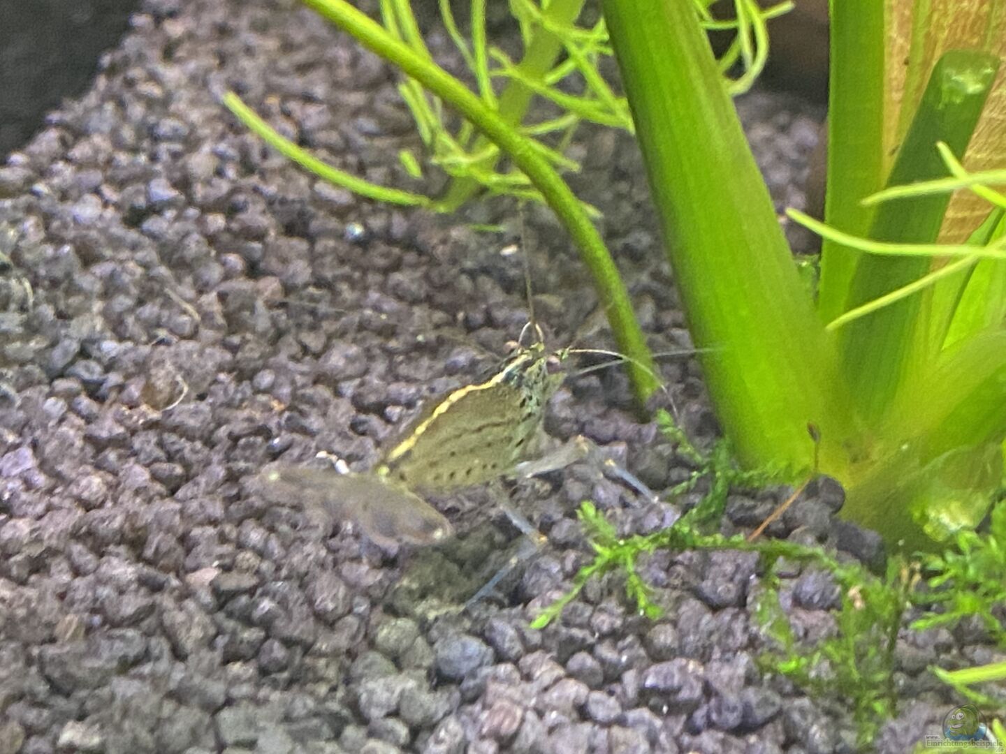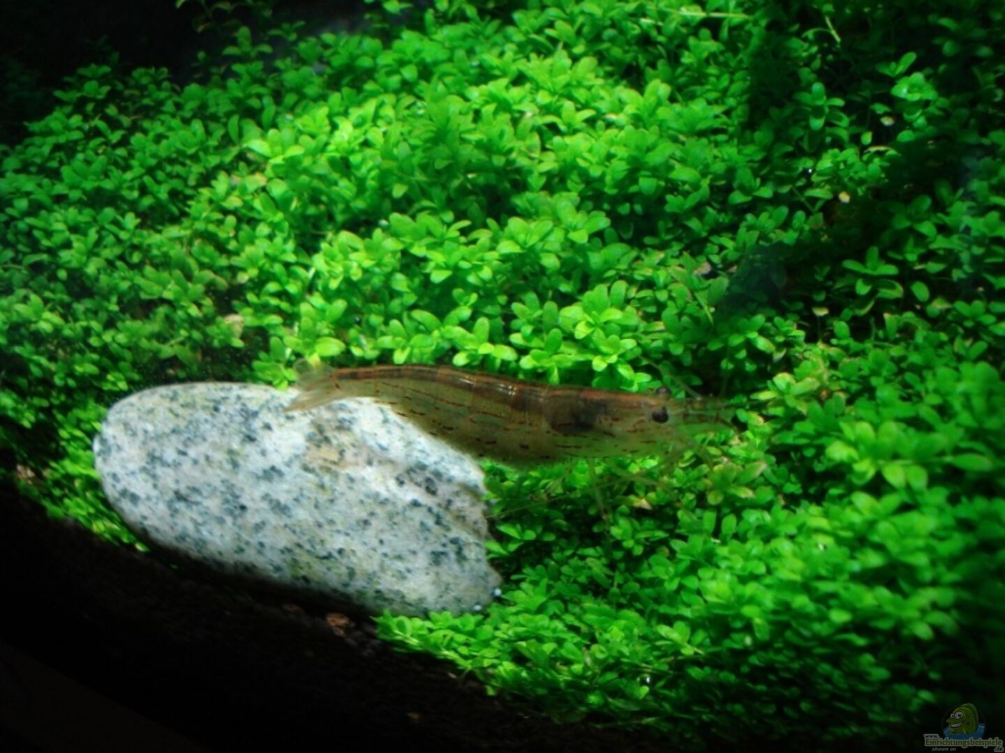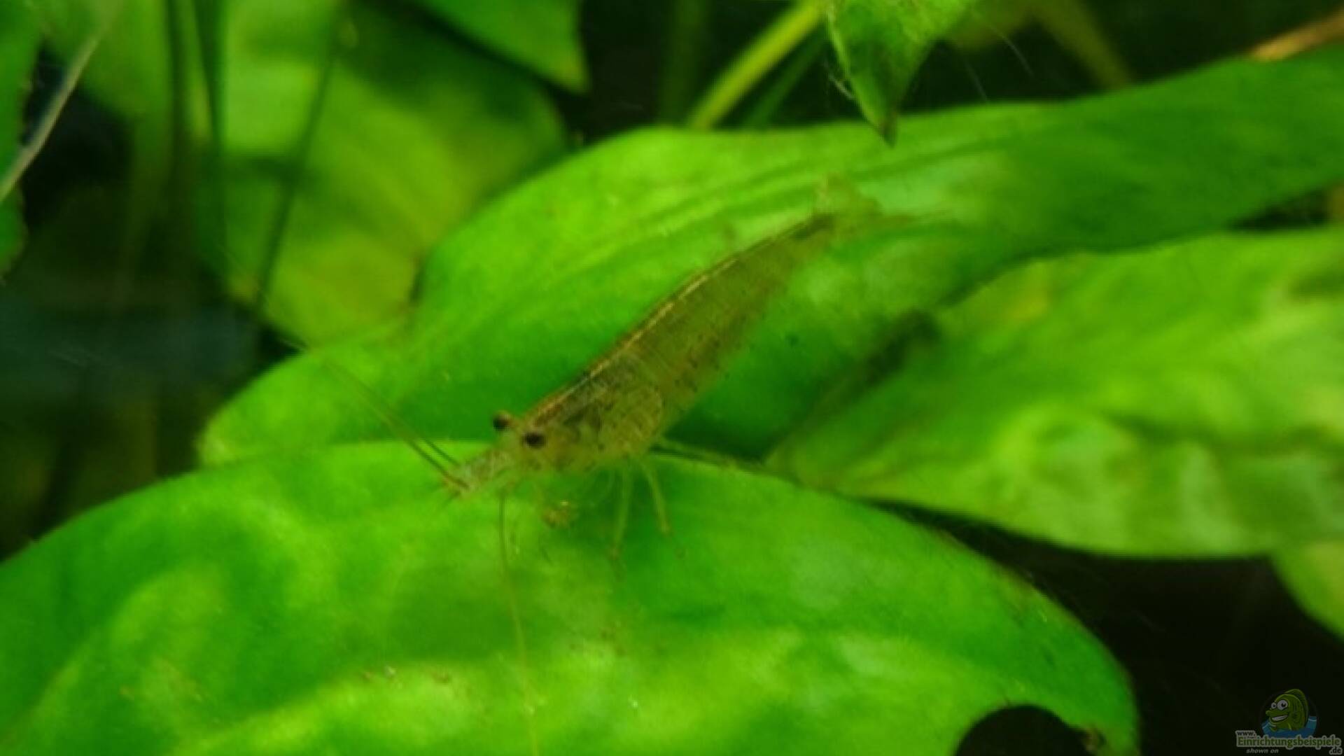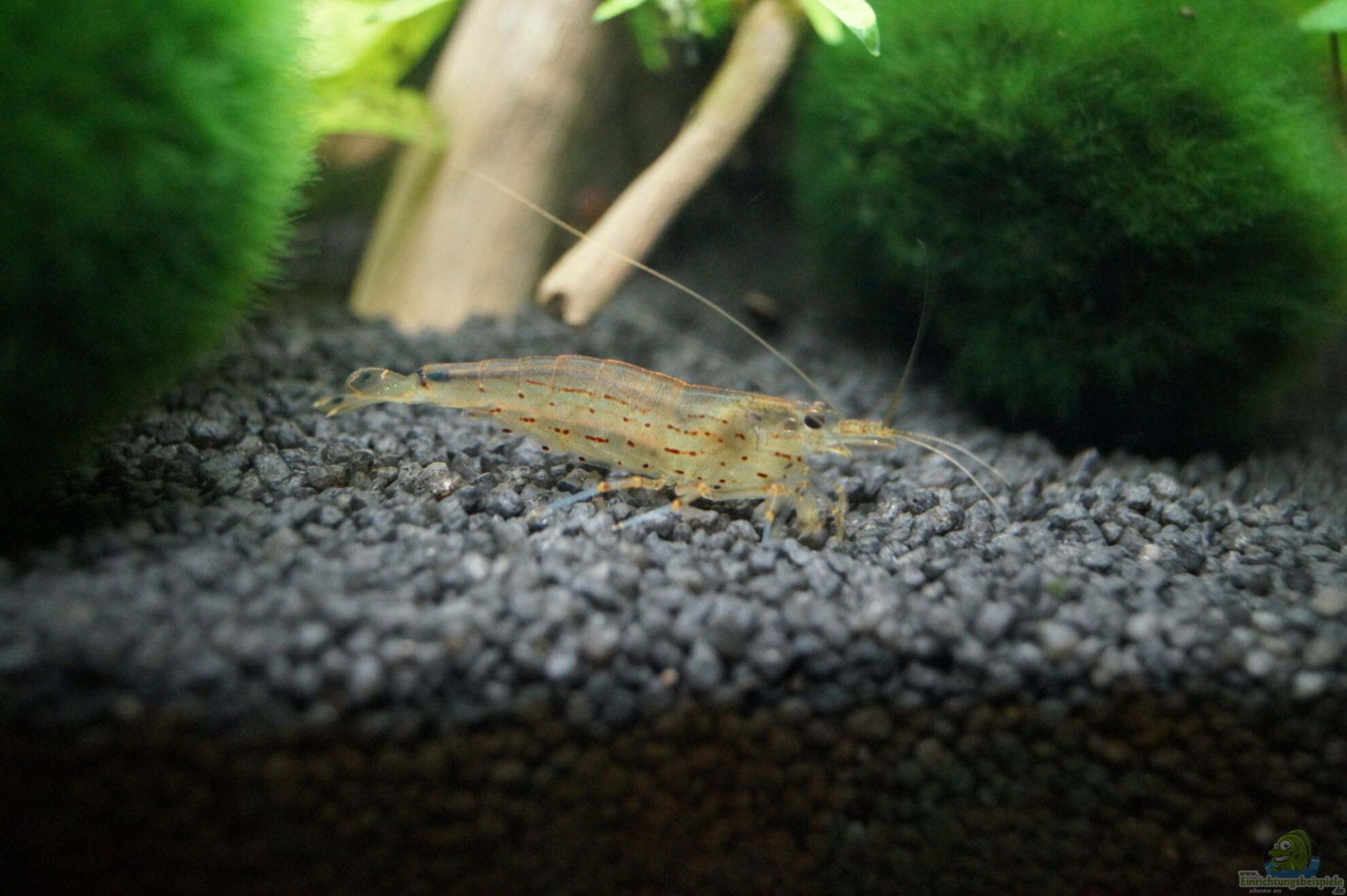 Für eine Zwerggarnele wird die Amano-Garnele mit 5cm recht groß. Eine Gruppe Amanogarnelen von 10 bis 20 Tieren kann in einem Aquarium ab 60cm Kantenlänge gehalten werden.